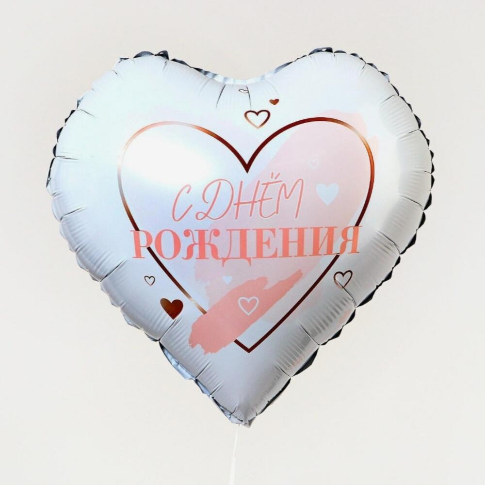 Красивый фольгированный шар в подарок на день рождения в форме сердечка с надписью. Размер шара указан в не надутом виде.
