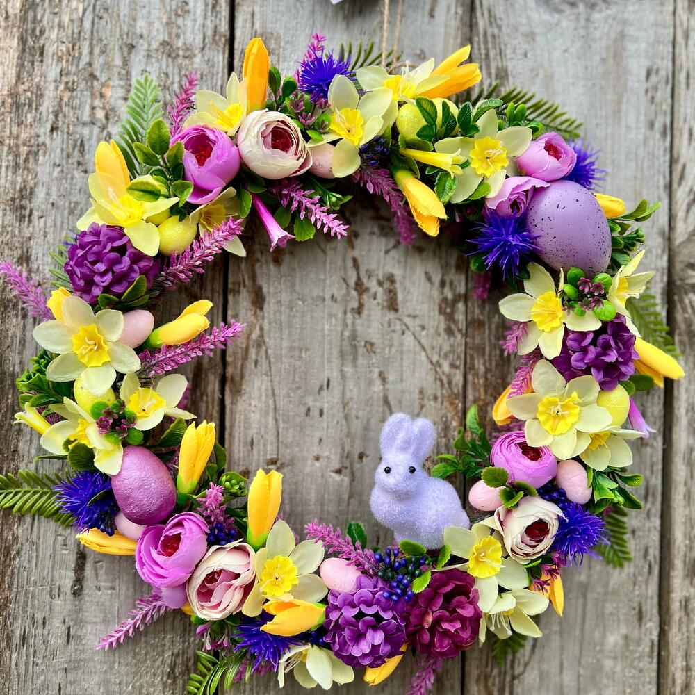 Оригинальный венок в сиреневой гамме станет прекрасным подарком для мамы , друзей или для себя 🫶🏼 Венок стильно украсит ваше пространство и подарит праздничное настроение 🐣 Венок упакуем в стильную коробку с прозрачным окном и приложим открытку с Вашими пожеланиями ☺️