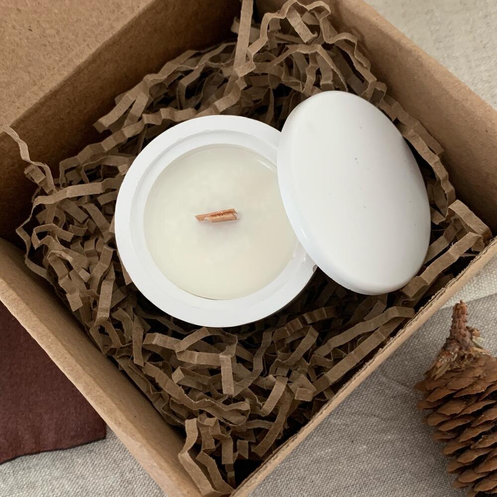 Ароматическая свеча в гипсовом подсвечнике с крышкой ✨ Состав: - кокосовый воск - деревянный фитиль - аромат: манго и мандарин Описание аромата: Знакомая всем свежесть и пряность натуральной цедры мандарина и мягкая сочная мякоть манго встретились вместе в этой композиции и создали невероятно сбалансированный по сладости и насыщенности купаж Идеальный подарок на любой случай❤️