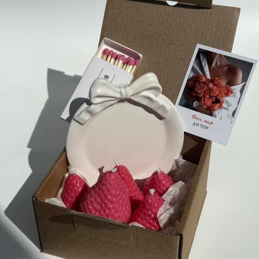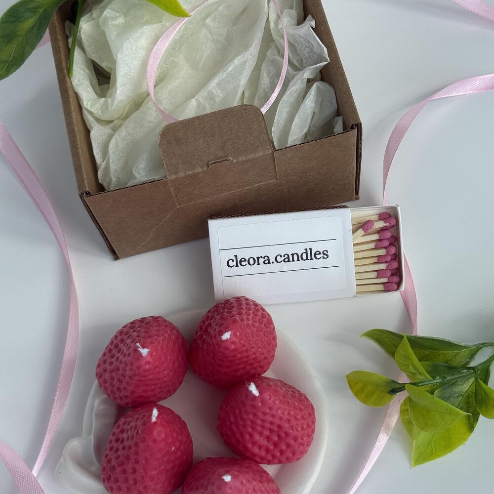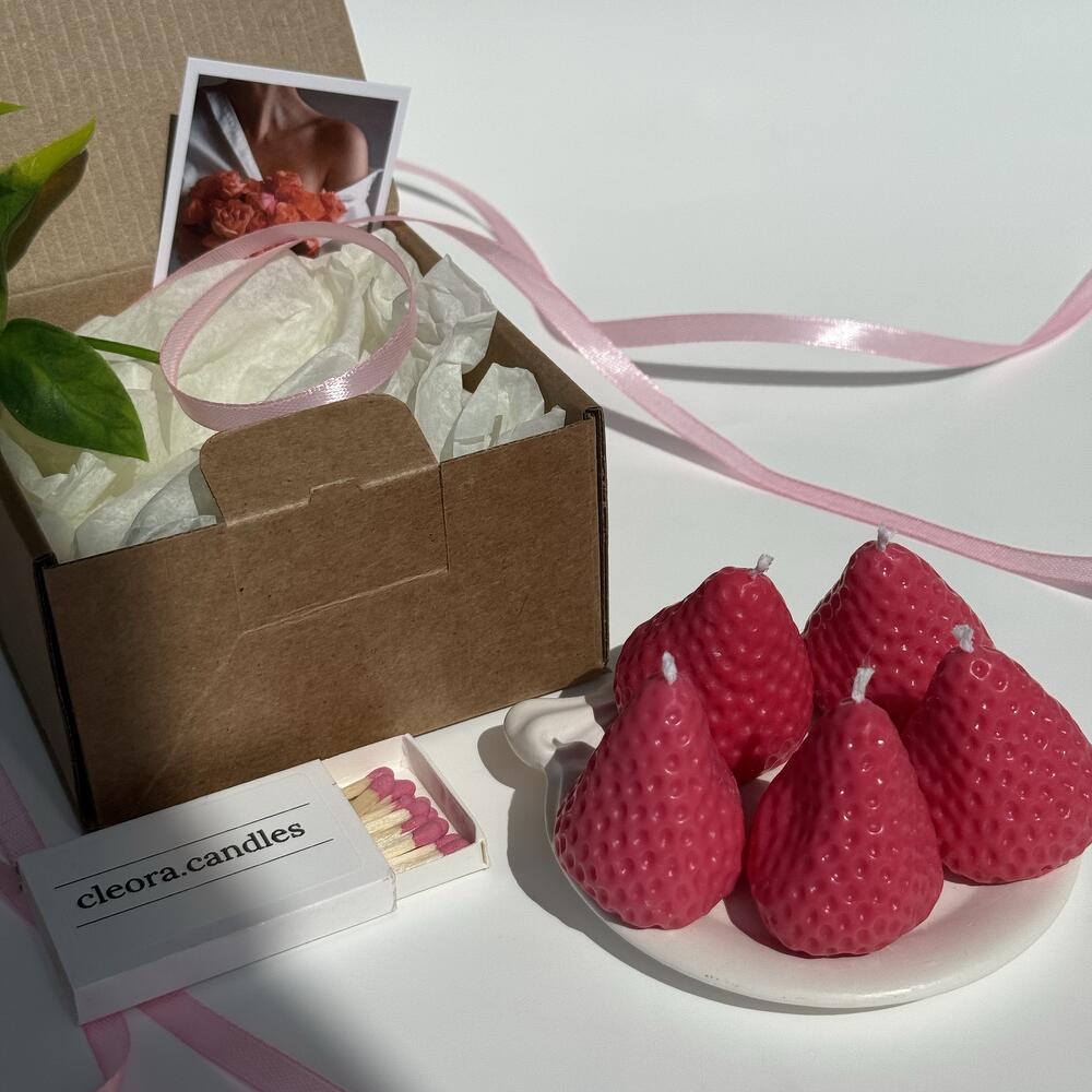 Набор ароматических свечей Сочная клубничка Подарите себе и близким летнее настроение с этим очаровательным набором свечей в форме спелых клубничек! Каждая свеча выполнена в реалистичном дизайне, передающем сочность и яркость свежесобранных ягод. ✨ Особенности набора: - Аромат: сладкий, медовый - Материал: натуральный пчелиный воск (экологично и безопасно). - Горение: ровное, без копоти, с приятным насыщенным ароматом. - Дизайн: миниатюрные клубнички в наборе 5 шт идеально подходят для декора или в качестве милого подарка. Идеально для создания уютной атмосферы, романтического вечера или в качестве дополнения к подарку для любителей сладких ароматов. Позвольте себе насладиться вкусом лета в любое время года! 🎁 Отличный вариант для: подарка на День святого Валентина, 8 Марта, День рождения или просто без повода. Погрузитесь в мир сладких грёж с набором Сочная клубничка! 🍓✨