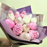 Designer packaging - 1 pcs a bow of satin ribbon - 1 pcs клубника в бельгийском шоколаде с рисунком и шоколадной стружкой - 13 pcs