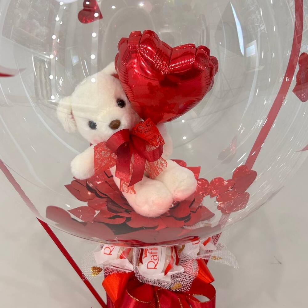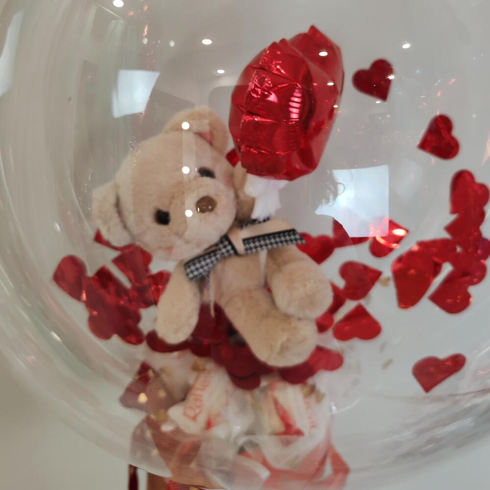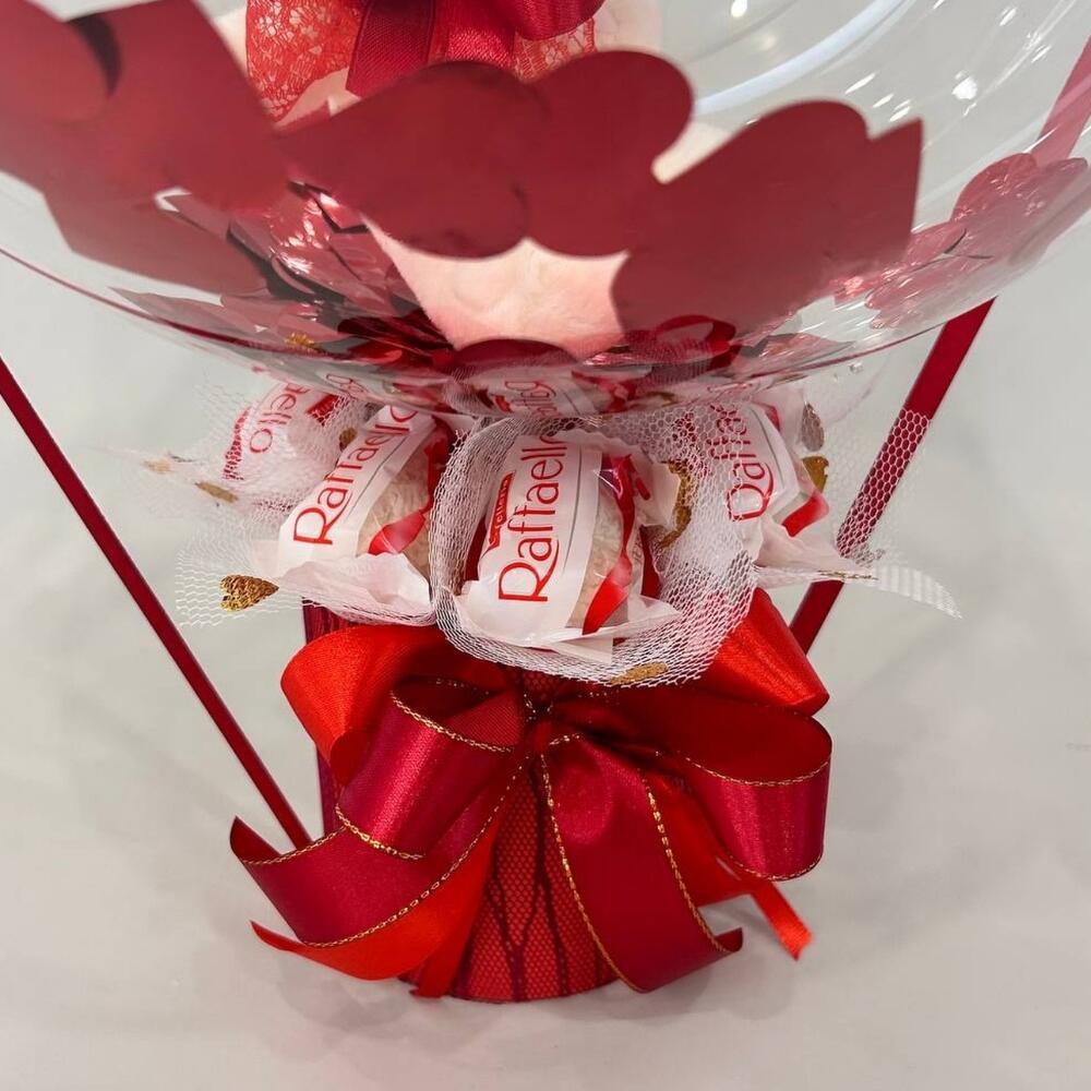 Satin ribbon - 1 pcs raffaello candies - 7 pcs коробка шляпная средняя 12 см - 1 pcs шар баблс с игрушкой и конфетти - 1 pcs