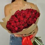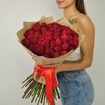 Подарки к каждому букету. - Бесплатная открытка - Подкормка для цветов - Инструкция к букету - Аквабокс Классика: монобукет из 51 красной розы 40 см Роза из солнечной Кении красная роза с крупным бутоном, хорошая вазостойкость и положительные отзывы клиентов. Красные розы в крафтовой упаковке - прекрасный стильный подарок на день рождения, юбилей, который точно понравится. Самым любимым женщинам - дарите красные розы! Букет идеально подходит для романтического повода, для любимой девушки