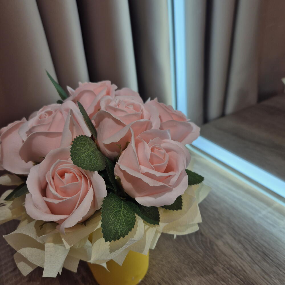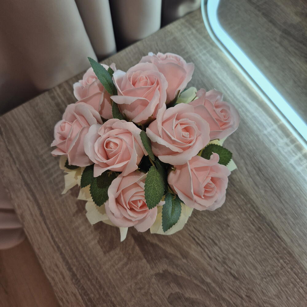 Букет из 9 розовых роз из мыльной пены. Многолетний декор, не требует полива, обладает приятным ароматом Хороший подарок для девушки любого возраста. На день рождения, день матери