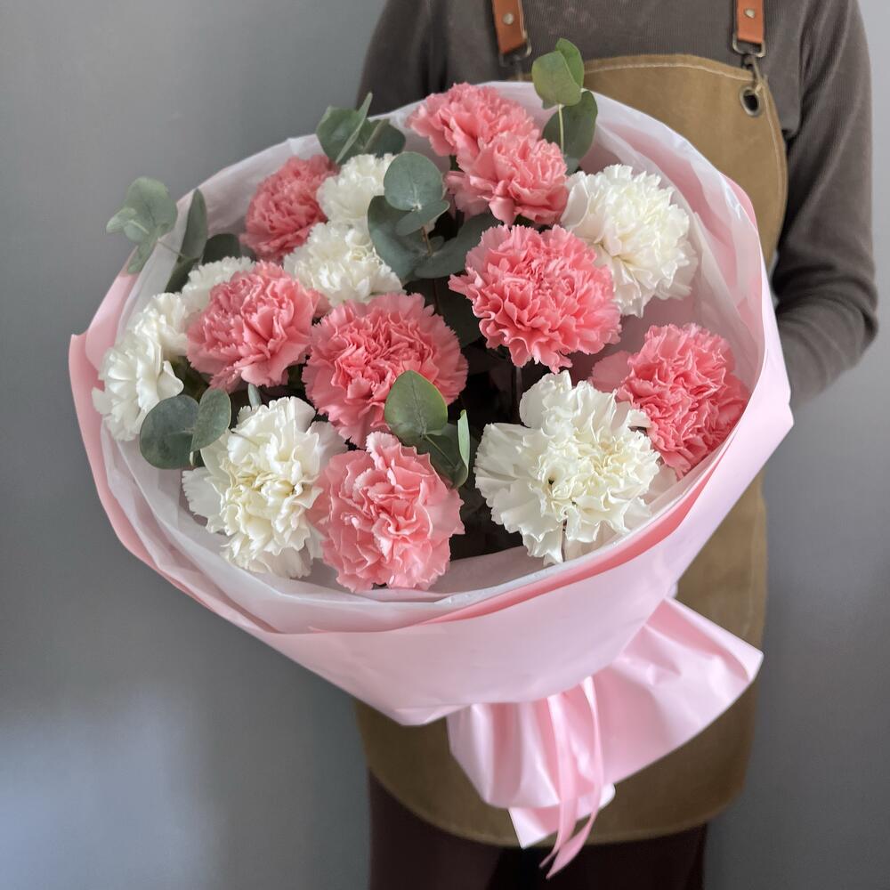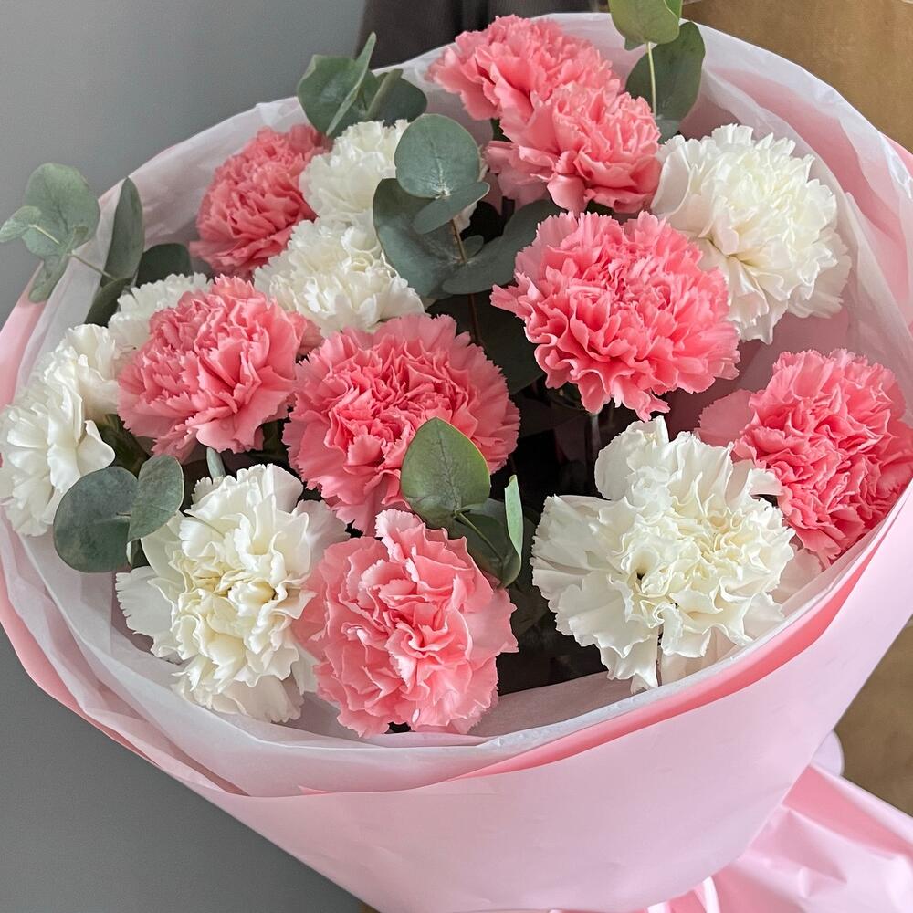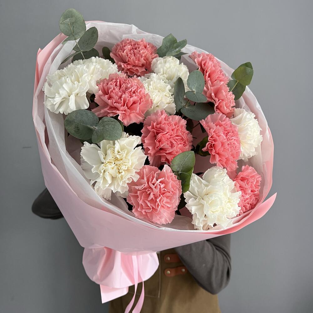 Eucalyptus - 7 pcs Designer packaging - 1 pcs Varietal dianthus - 15 pcs