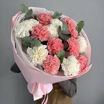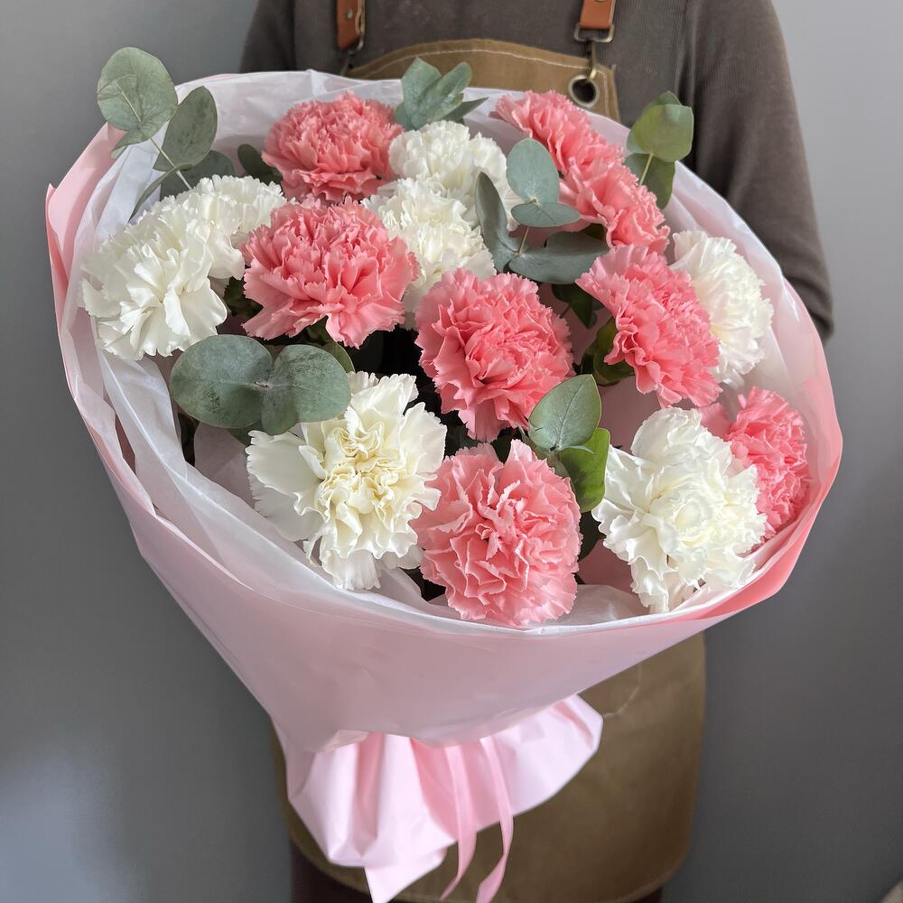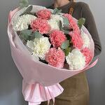 Букет из 15 диантусов «Дыхание пиона» и эвкалипта