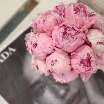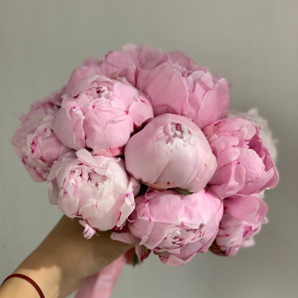 Peony Sarah Bernhardt - 13 pcs Pink satin ribbon - 1 pcs
