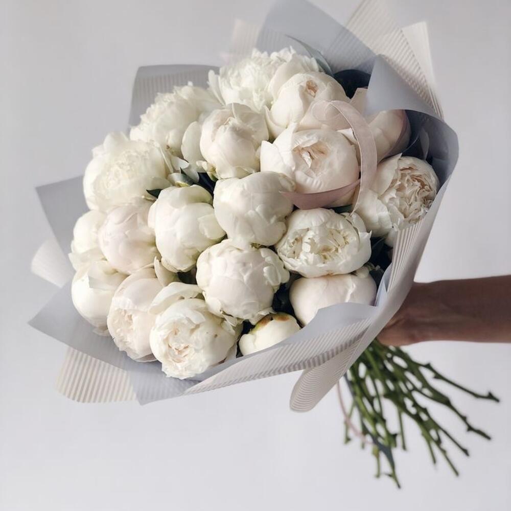 Этот изысканный букет включает в себя 23 пиона, знаменитых своей нежной красотой и обильным цветением. Они наполнят комнату невероятным ароматом и создадут атмосферу уюта и радости. Букет упакован в авторскую упаковку и украшен атласной лентой, что придаст ему особый шарм и изысканный вид. Подарите этот букет близкому человеку и они будут буквально в восторге от его красоты и изысканности. Мы берем самые свежие цветы с нашего склада, в связи с этим наше время сборки букета чуть больше остальных, но зато вы получаете лучшие и самые свежие цветы.