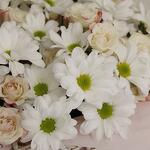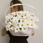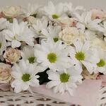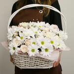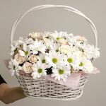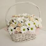 Piaflor (oasis) - 2 pcs Bush rose - 4 pcs Chrysanthemum bush - 3 pcs Silence - 2 pcs wicker basket s - 1 pcs