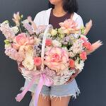 Корзина с французскими розами,маттиолой,эустомой, ромашками «Мечта»