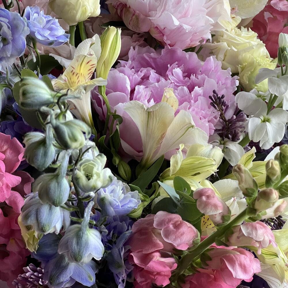 Премиум букет из садовых цветов🌿Ароматные нежные пионы, изысканный дельфиниум , стремящиеся в высь антиринум, воздушная альстромерия и нежная эустома в сочетании с ароматным эвкалиптом 🌿 в стильном оформлении💫 Букет вдохновляет своей нежностью и ароматом💞