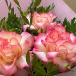 Не большой маленький букет розового цвета из розовых французских роз с зеленью с доставкой заказать в Люберцах, Москве и Московской области ! Букет цветов для девушки, подруги, мамы, коллеги, бабушке. Букет из зелени и французских роз розового цвета на праздник, на день рождения, на юбилей. Инструкция по уходу: перед постановкой в воду, подрежте стебли, на 1-2 см (за время транспортировки, стебли подсохли и цветам тяжело пить); держите цветы в дали от прямых солнечных лучей и источника тепла; по возможности не ставьте на сквозняки, они способствуют потери влаги цветами; для букетов - меняйте воду в вазе, не реже 1 раза в два дня, при жаркой окружающей среде -ежедневно, по возможности опрыскивайте листья, не попадая на соцветия; для коробок/композиций - подливайте воду в центр букета, раз в два дня, при жаркой окружающей среде - ежедневно (50мл); Благодаря нехитрым действиям, цветы будут вас радовать продолжительное время. Дополнительно можете заказать: открытку с вашим пожеланием - бесплатно; кризол - средство для продления жизни срезанным цветам (1 пакетик идёт в подарок; транспортировочную вазу; конфеты, шоколад; мягкие игрушки; стеклянную вазу для букета Надеемся что вам понравится наш сервис и получатель останется доволен.:) Французская роза, нежная розовая - идиальное решение для подарка. Невероятно элегантный букет из французских роз, создаст прекрасное настроение и подарит незабываемые моменты радости. Побалуйте своих близких этим стойким изысканным цветком и сделайте день особенным. Букет подойдёт на для девушки, как букет маме.Французская роза. Нежная, розовая и невероятно элегантная, прекрасный нежный букет из трёх французских роз, который подарит незабываемые моменты радости. Порадуйте своих близких этим изысканным букетом и сделайте день особенным.