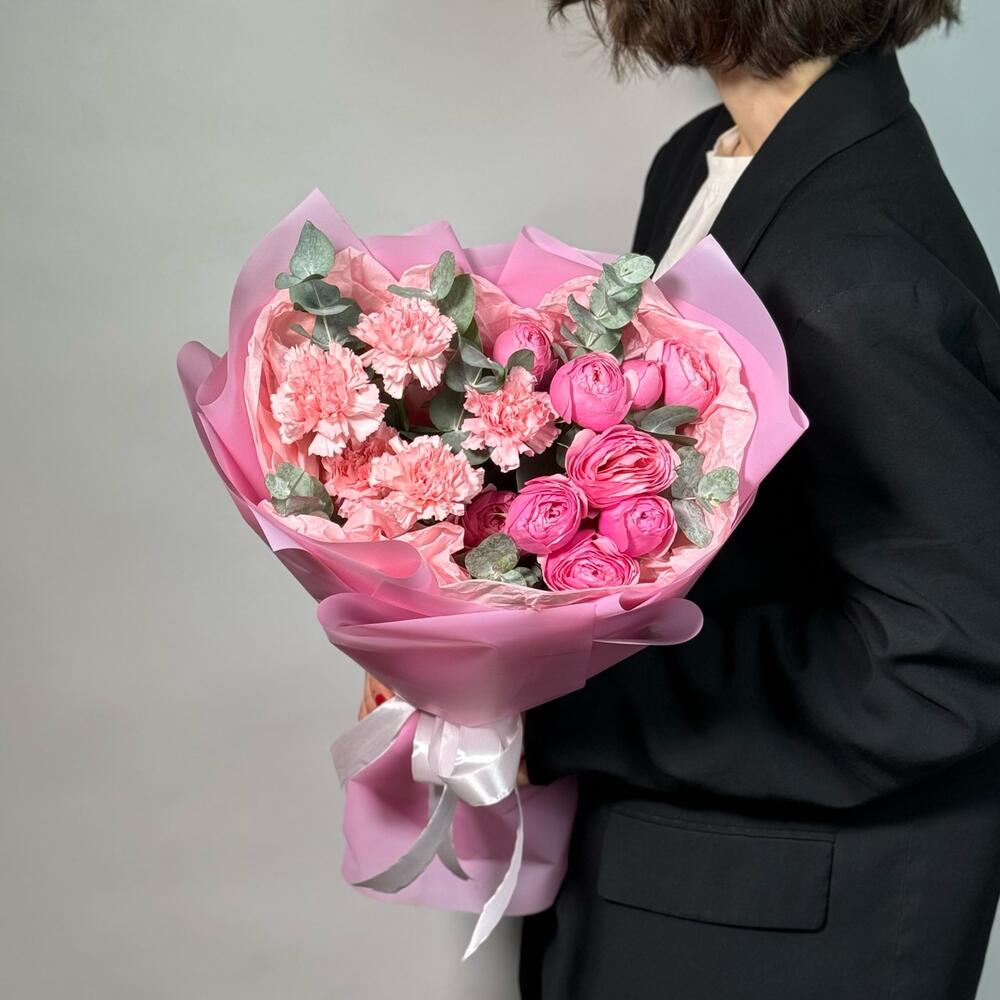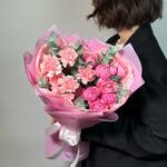 ✅Добавляйте товар и магазин в избранное, чтобы было легче нас найти Розовый букет с пионовидными розами и диантусами 💕 — это нежная и романтичная композиция, где пышные пионовидные розы создают объём и элегантность, а мягкие диантусы добавляют лёгкость и изящность. Гармоничное сочетание оттенков и текстур делает букет воздушным, свежим и идеально подходящим для подарка или украшения интерьера. Как ухаживать за цветами: 1. Обновите срезы стеблей под углом 45° перед постановкой в вазу. 2. Используйте прохладную чистую воду и средство для срезанных цветов (идёт в комплекте). 3. Меняйте воду и обновляйте срез каждые 1–2 дня, избегайте прямых солнечных лучей. Доверяйте лучшее GF!