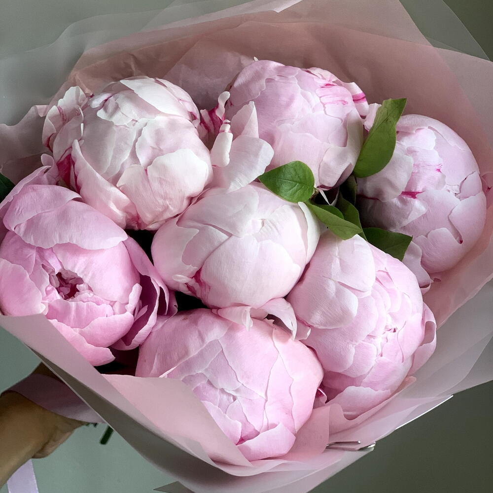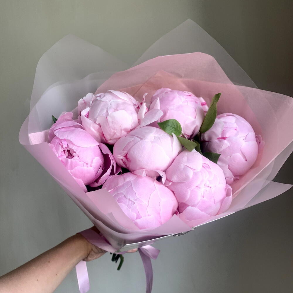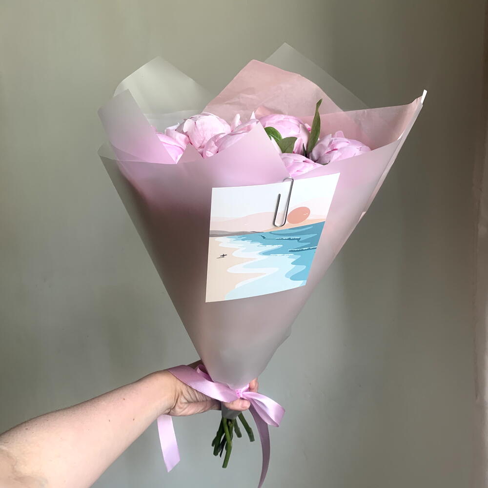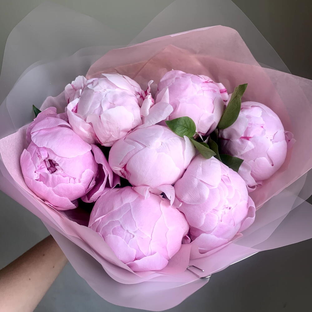 Семь мгновений лета- букет из розовых пионов сорта Сара Бернар