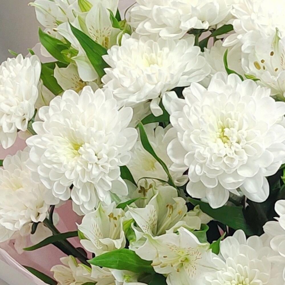 Хризантема и альстромерия это одно из самых стойких сочетаний цветов, а белый цвет символизирует чистоту, нежность и уважение. Такой букет станет отличным подарком для сестры, девушки, коллеги, начальнице, маме, бабушке и любому из ваших близких и любимых людей на любое торжество, будь то день рождения, юбилей, рождение ребёнка, свадьба, годовщина, профессиональный праздник, свидание или просто знак внимания. Чтобы букет радовал вас своей красотой и свежестью нужно соблюдать всего несколько лёгких правил: 🌱в чистую вазу налейте холодную воду (для хризантем достаточно трети вазы) 🌱обновите срез на стебле перед тем как поставить цветы в воду 🌱ежедневно меняйте воду в вазе 🌱не оставляйте букет в слишком жарком или холодном месте, а также избегайте прямых солнечных лучей и нагревательный приборов 😉 В подарок от магазина идёт маленький презент. Мы бережно доставим цветы и они точно принесут радость Вашим близким и родным людям!