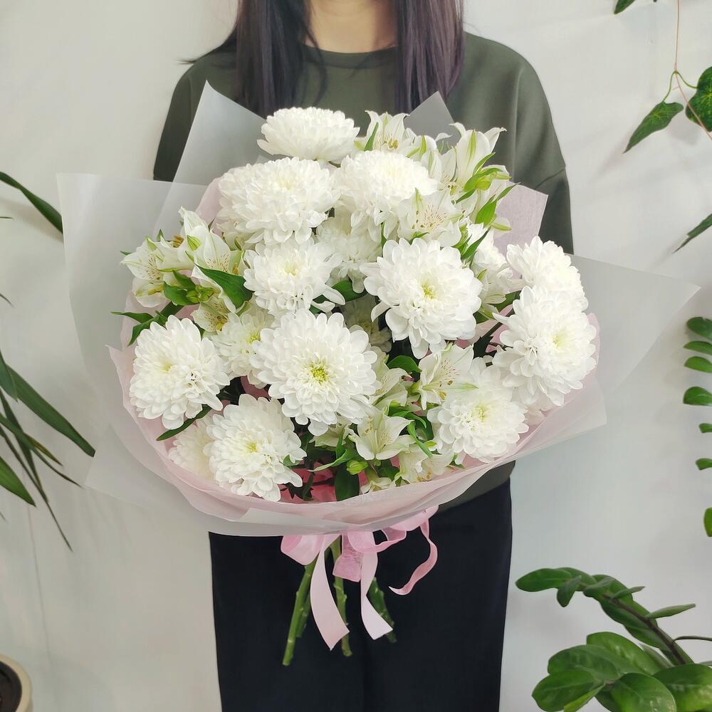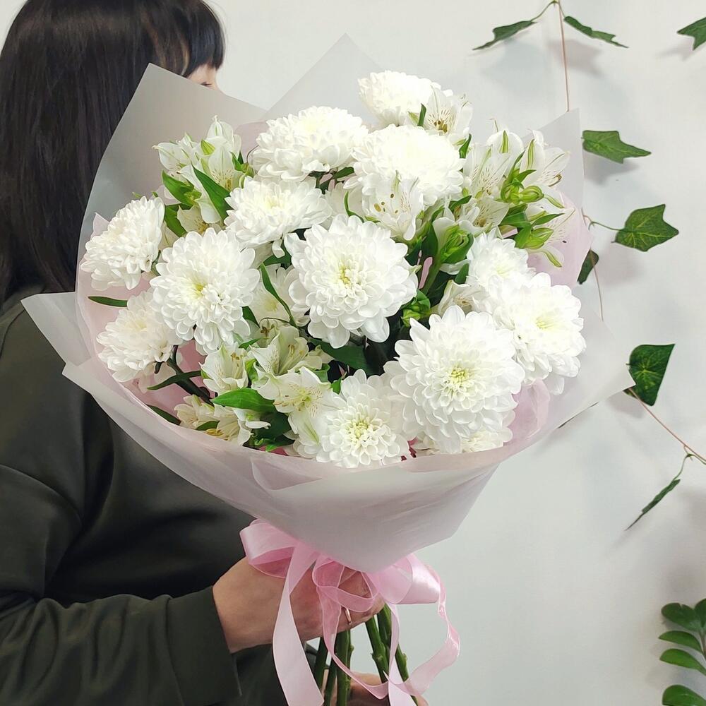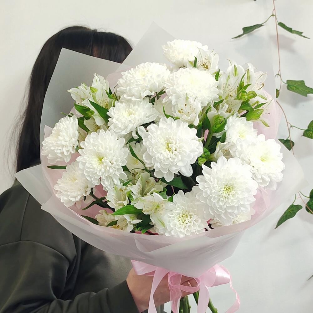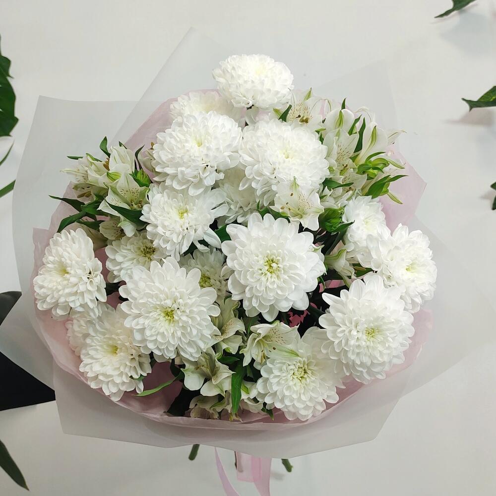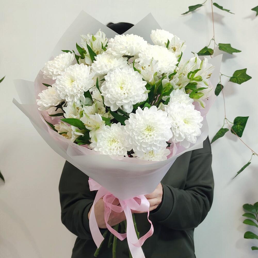 Alstroemeria - 4 pcs Chrysanthemum bush - 3 pcs Designer packaging - 1 pcs