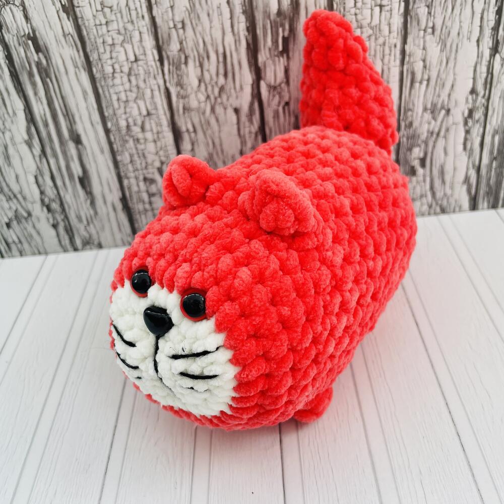 Милый котик из плюшевой пряжи, очень приятный на ощупь