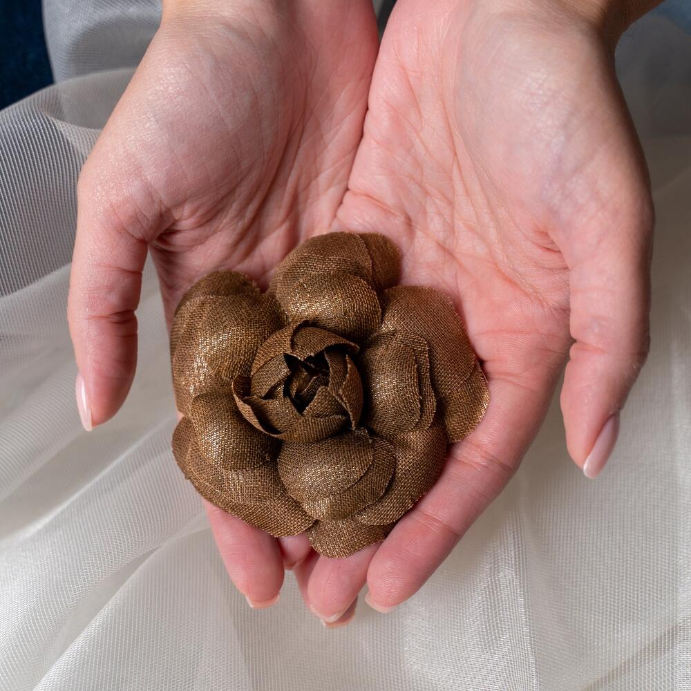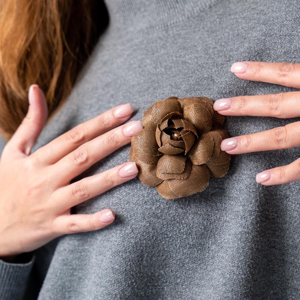 Брошь в форме классической камелии Шанель, выполнена из уникальных японских тканей в технике шелковой флористики. Имеет очень удобную магнитную застежку, которая не требует прокола ткани, а крепится к одежде на магните.