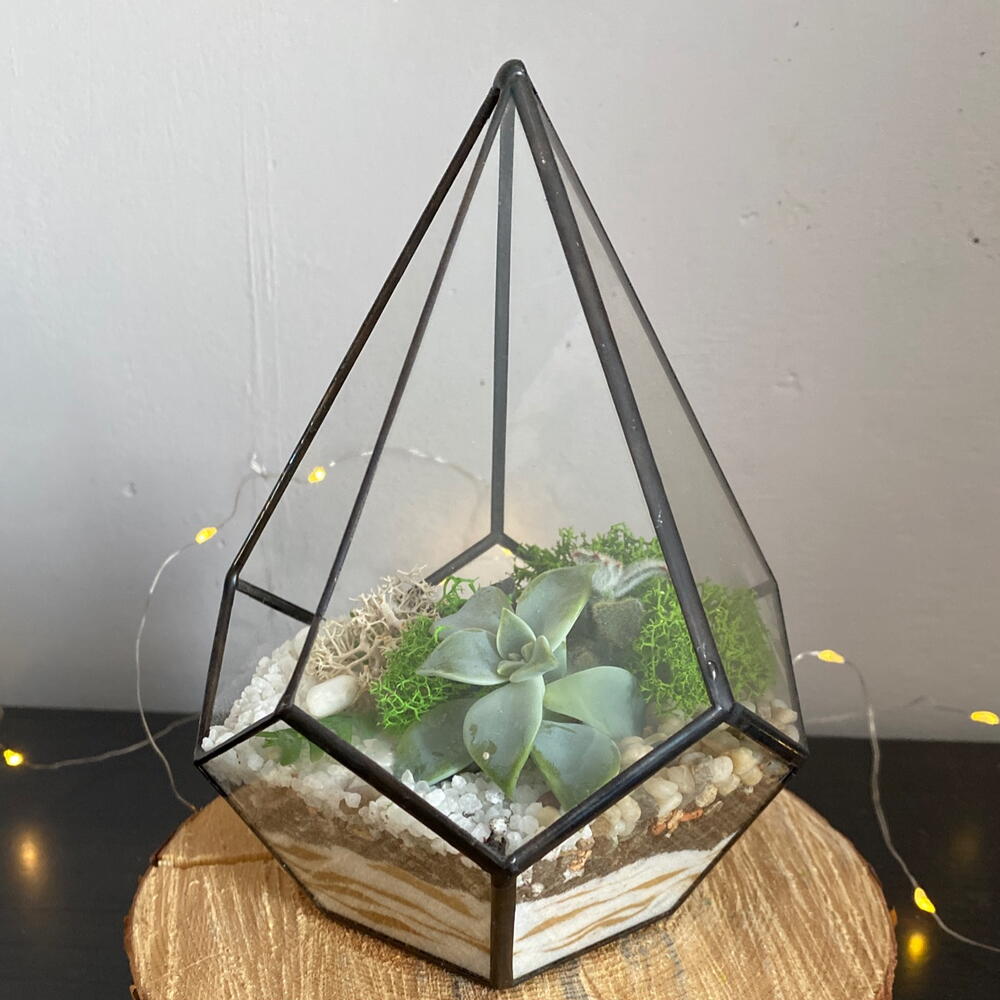 Суккуленты будут медленно расти и радовать вас при соблюдении простых правил ухода. Рекомендуемый полив 1 раз в 7-10 дней с помощью шприца (идёт в комплекте) Необходимо светлое месторасположение флорариума