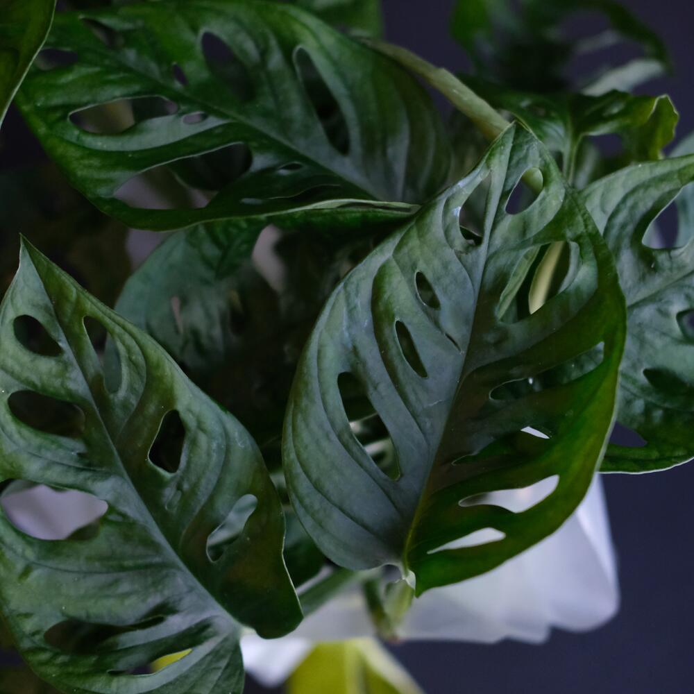 Монстера Манки Маск, также известная как Monkey Mask, Манки Мэск, Маска обезьяны или Обезьяний лист, представляет собой красивый и компактный сорт из семейства Ароидные. Это вьющееся растение с крупными листьями. Листья ланцетные, длиной до 20-25 см. Они имеют гофрированную поверхность и резные прорези, большая часть которых располагается в середине листа вдоль жилки, при этом концы листьев закрыты.