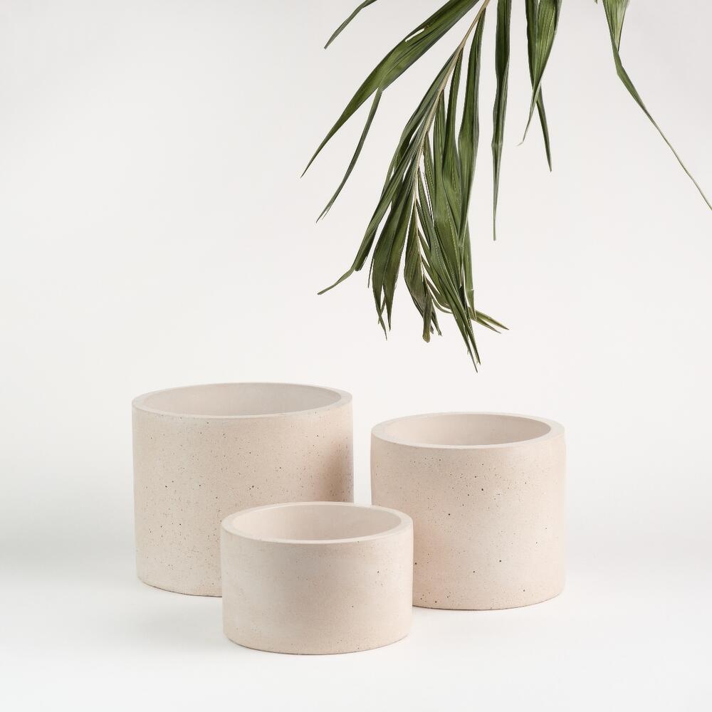 Набор из 3х кашпо, выполнено из бетона. -размер S высота 7 см*11.7 внешний объем*10 см внутренний объем -размер M высота 10 см*12.5 внешний объем*10.5 см внутренний объем -размер L высота 12 см*15 внешний объем*13 см внутренний объем