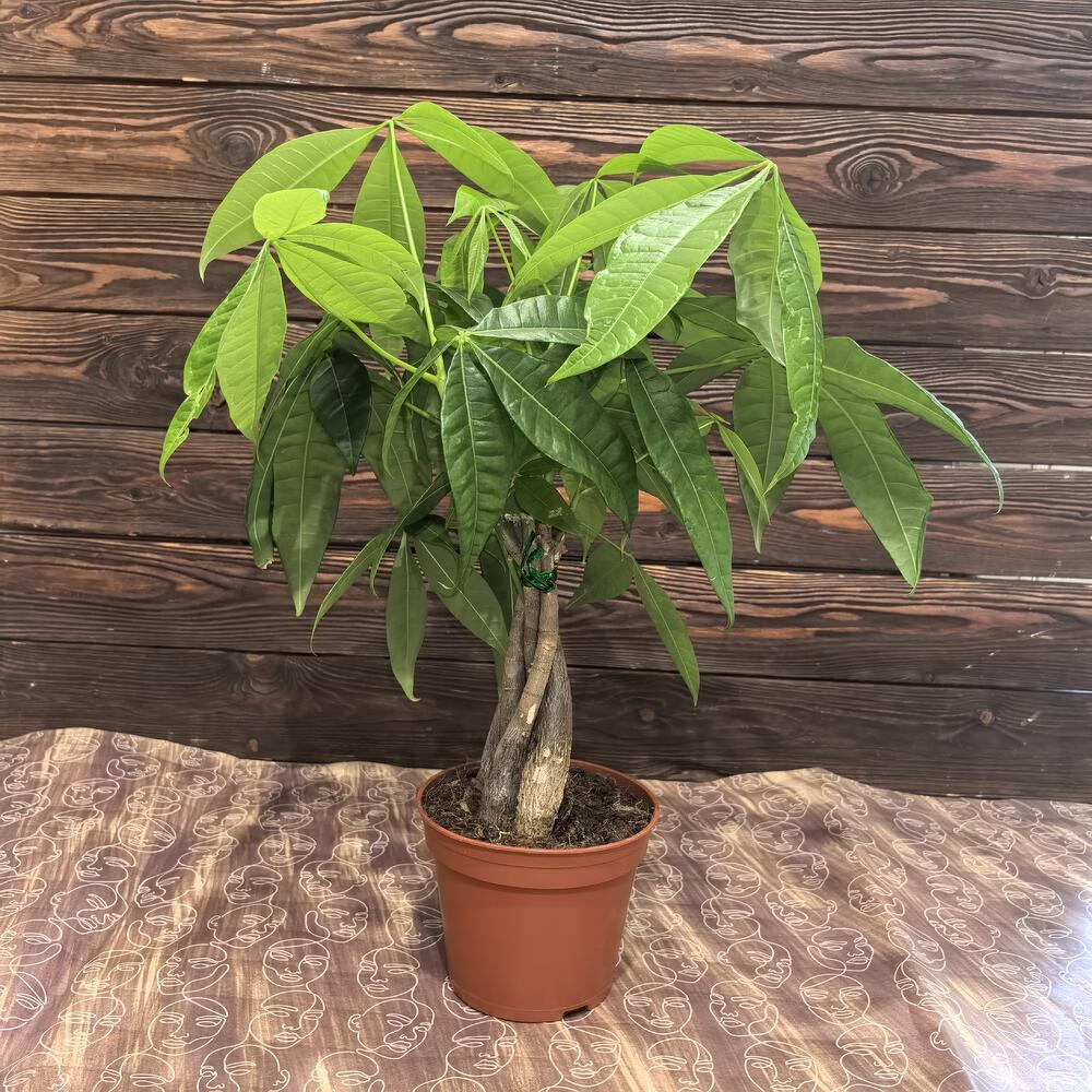 Пахира Акватика тропиканка, родина – тропическая часть Центральной и Южной Америки. Растение из-за особой формы стебля называютбутылочным деревом. Искусственное переплетения стеблей, позволяет создавать косичку и формировать интересно крону из крупных пальчатых листьев. Ещё ее называют водяной пальмой! Пахира, растение статусное и элегантное! Хороший подарок и ценный солитер в интерьере.