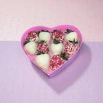Клубника в белом шоколаде в подарочной коробке-сердце Подарите близким мгновение настоящего удовольствия с изысканным набором клубники, покрытой нежным белым шоколадом! Лакомство аккуратно уложено в стильную коробку в форме сердца, выполненную в нежном розовом цвете — идеальный выбор для романтического подарка. Особенности набора: Сочная клубника — отборные ягоды, которые сохраняют свою свежесть и натуральный вкус. Нежный белый шоколад — создаёт бархатистую текстуру и подчёркивает природную сладость клубники. Часть ягод покрыта ровным слоем шоколада, другие украшены изящными «волнами» для особого шарма. Декоративная посыпка из сублимированной малины — добавляет яркости и лёгкой кислинки, создавая гармоничный контраст с белым шоколадом. Элегантная подача — каждая ягодка размещена на бумажной подложке, что предотвращает слипание и сохраняет презентабельный вид. Этот набор станет прекрасным подарком на: День святого Валентина; годовщину отношений; день рождения; 8 Марта; любой другой особенный день. Сочетание нежности белого шоколада и сочности клубники не оставит равнодушным ни одного гурмана. Подарите радость и вкус любви в красивой упаковке — порадуйте себя или своих близких этим восхитительным лакомством! 🍓✨