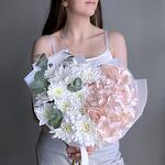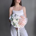 Нежный, максимально воздушный букет в пастельных тонах с ароматным эвкалиптом. Гортензия очень любит воду, не оставляйте ее срез без воды. Для вашего удобства все наши букеты доставляются в воде! Не забудьте подрезать цветы НЕПОСРЕДСТВЕННО перед тем как ставить в вазу (после подрезки в течении 2-3 секунд поставьте в воду). Не храните букет на прямых солнечных лучах и возле отопительных приборов, чтобы сохранить цветы свежими как можно дольше. Обратите внимание на размеры букета и фото в полный рост с человеком, для понимания размера композиции, это фото есть в карточке товара :)