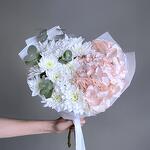 Букет розовая гортензия, хризантема и эвкалипт