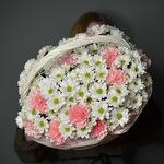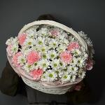 Корзина с ромашковой хризантемой и диантусами от цветочной галереи «Прованс» 🌿 • Подойдёт для любого повода и будет долго радовать получательницу 🌿 ✔️Стильная упаковка, которая подчеркивает красоту цветов ✔️ К букету можно добавить открытку или игрушку • Так как все цветы индивидуальны, исходя из сезонности цветка цвет бутона или зелень может немного отличаться. Но мы стараемся максимально повторить каждый букет или композицию, как на фото в карточке товара 🥰 • Как ухаживать за цветами? Всё просто: 1. Обновите срез букета (секатором или ножом срежьте стебли на 1 см под углом 45 градусов). 2. Поставьте цветы в вазу с холодной водой. Розы и гортензии пьют много воды. 3. Меняйте воду в вазе каждый день, обновляйте срез перед тем,как поставить в воду🥰 4. Не ставьте цветы на кухню, возле продуктов и напротив солнечных лучей. 5. Композиции и корзины с цветами нужно поливать 1 раз в день 🌿 • Добавляйте товар и магазин в избранное, чтобы было легче нас найти ❤️ • Также обращайте внимание на город при доставке, ведь у нас большой диапазон доставок, мы возим цветы и в другие города. Букеты доставляем бережно в аквабоксе с водой и в переноске. Также добавляем с инструкцию по уходу за цветами 🥰