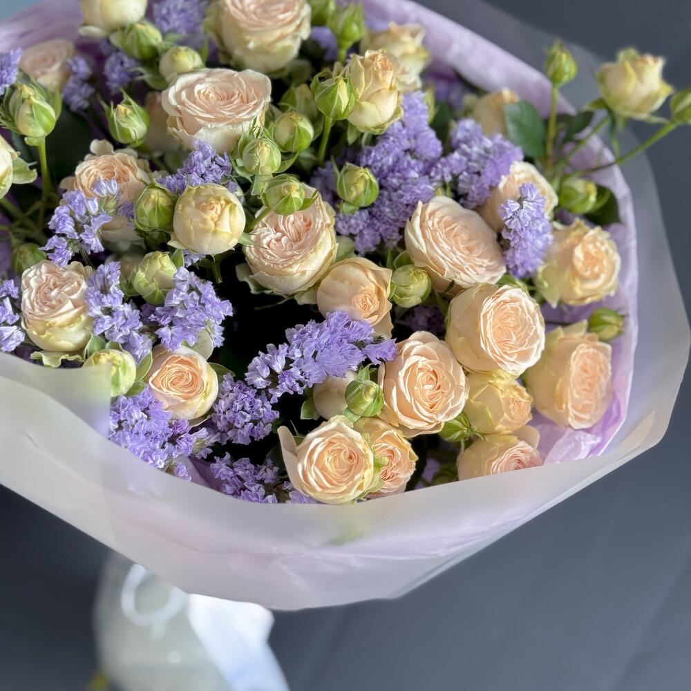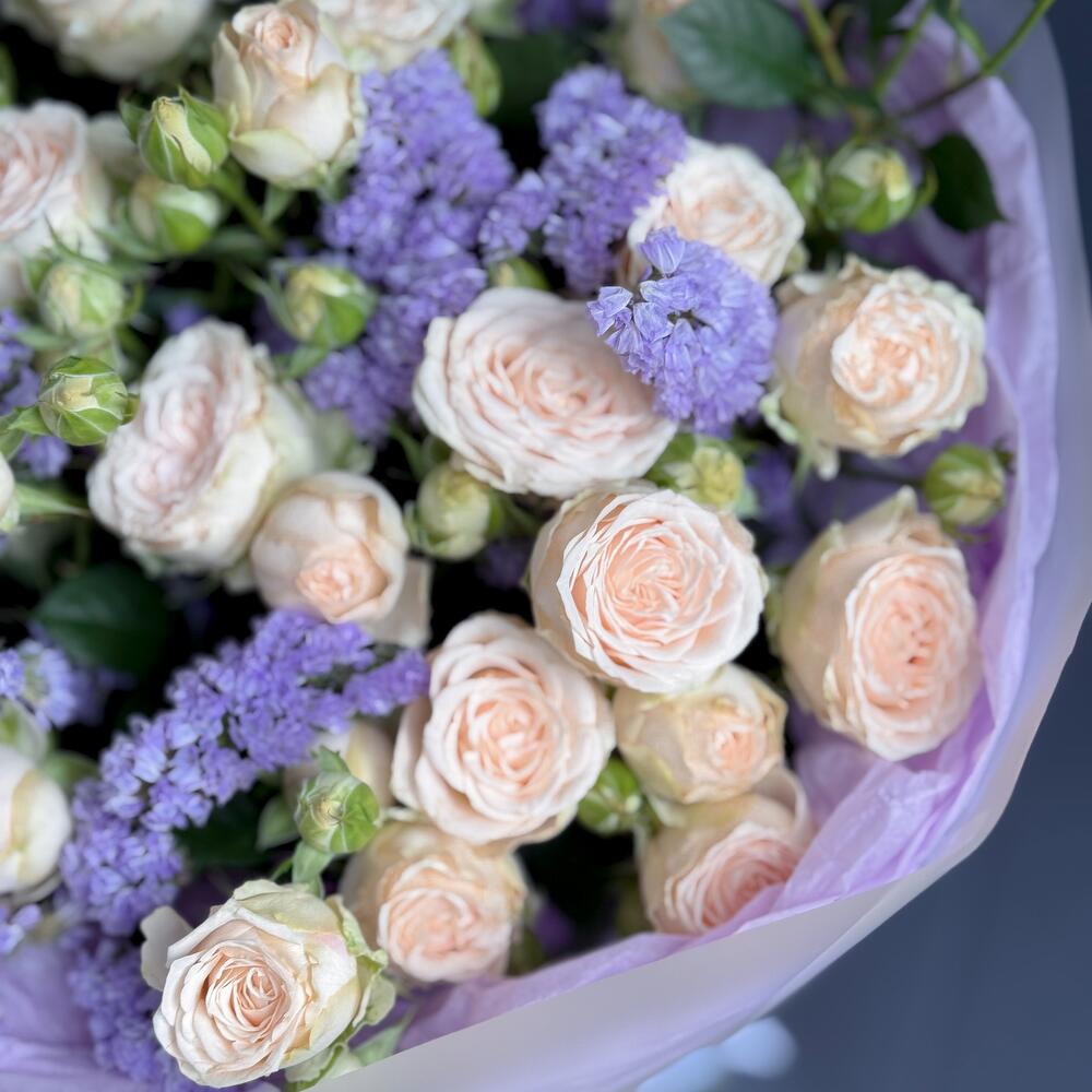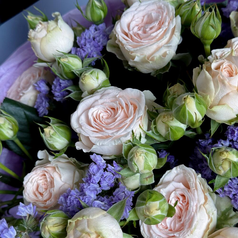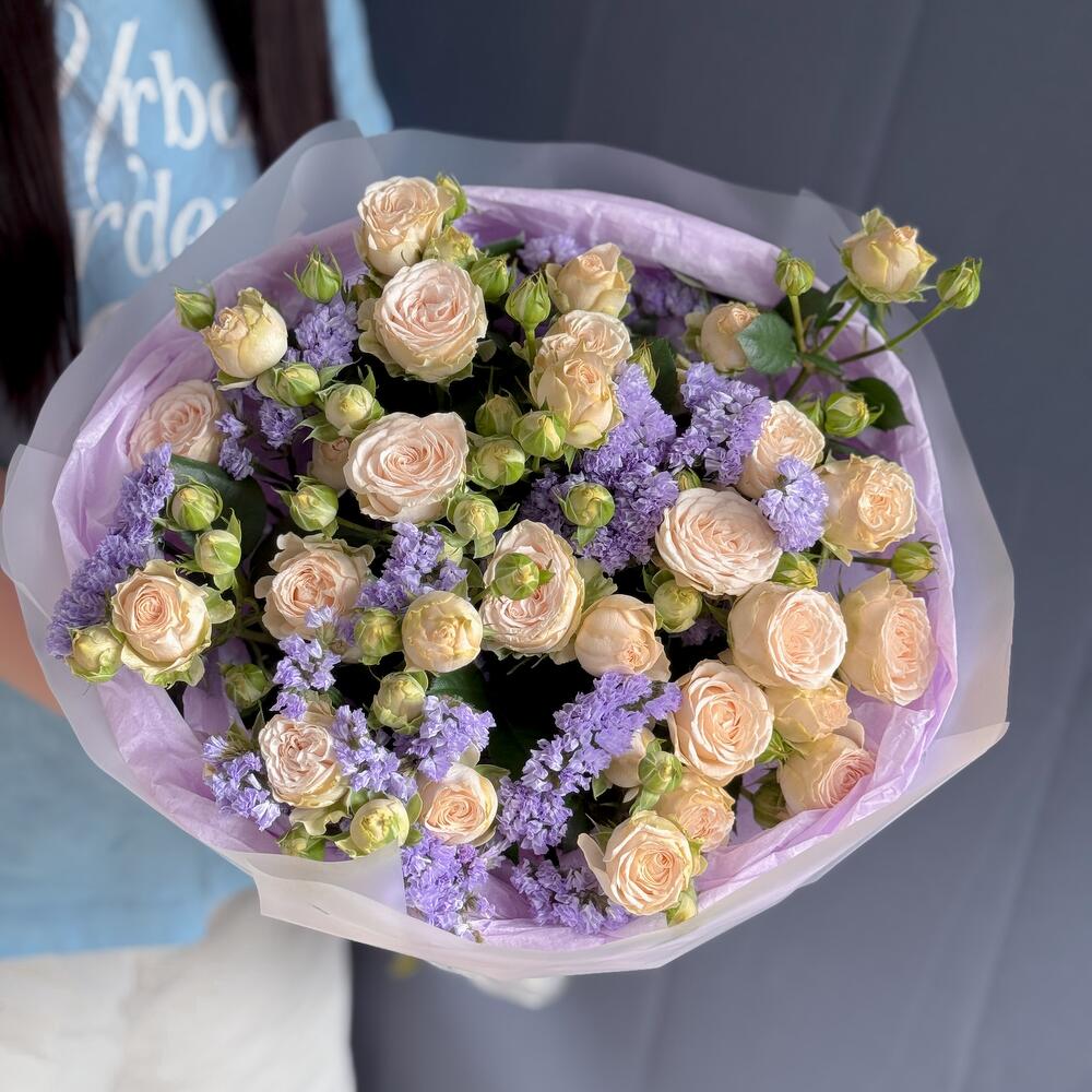 Rosa кустовая - 5 ud. Статица - 4 ud. Упаковка оформление - 1 ud.