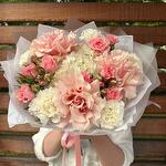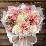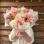 Нежный букет из гортензии, французских и кустовых роз и диантусов. Пышный, светлый, фактурный букет ей точно понравится! В комплекте направляем инструкцию и средство для ухода за цветами в вазе. По вашему желанию добавим открытку с пожеланиями. Дополнить подарок можно также воздушным шаром или конфетами. Добавляйте наш магазин в избранное и пишите в чат, если возникнут какие-либо вопросы. Мы всегда на связи 🤝