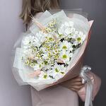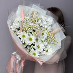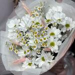 Танацетум - 2 ud. Колоски - 5 ud. Caja de regalo - 1 ud. Crisantemo manzanilla - 3 ud.