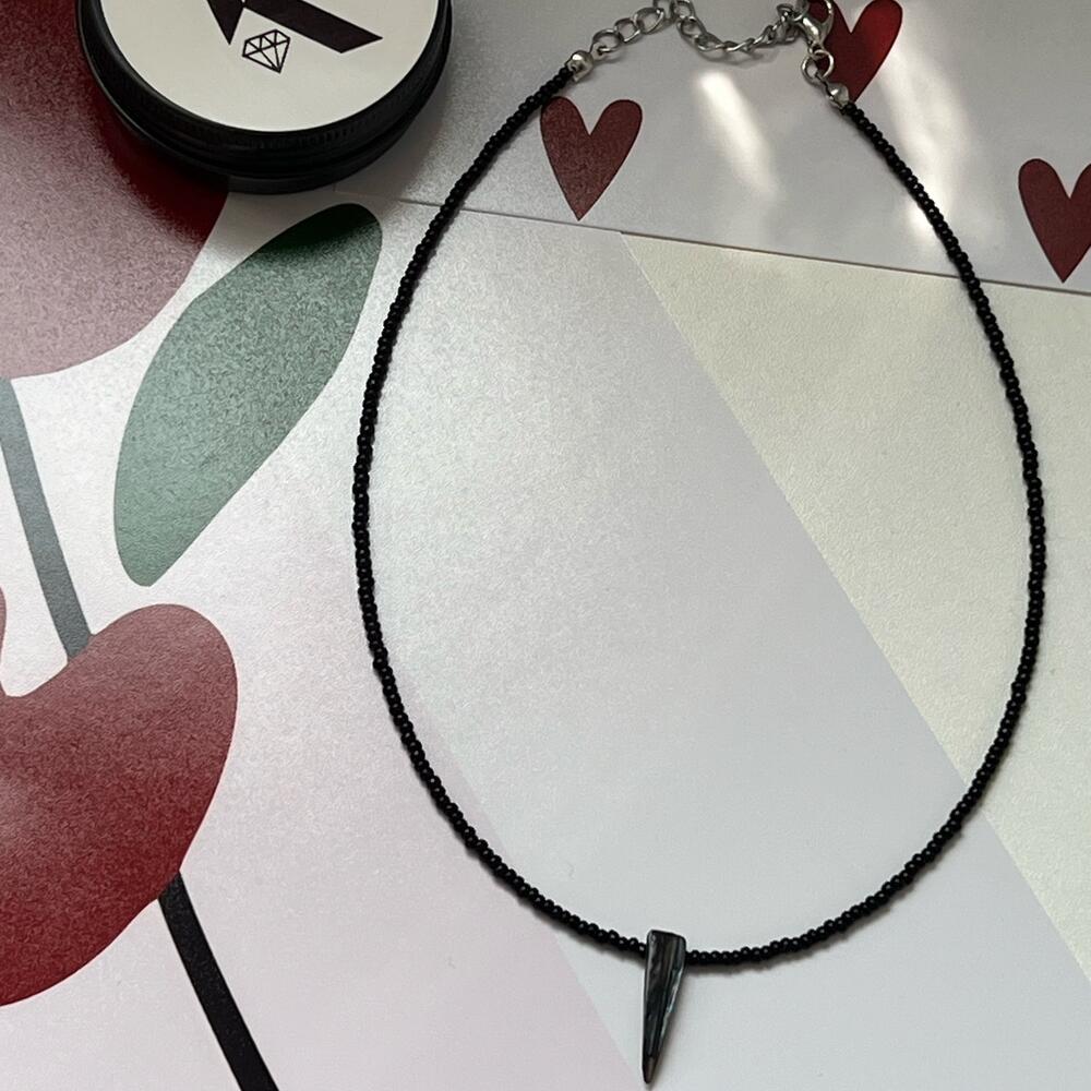 Минималистичный чокер из черного бисера, с вставкой из перламутровой ракушки. Отличный вариант для подарка подруге, сестре или любимой девушке. Идет в подарочной упаковке - стильной жестяной баночке с логотипом бренда «Камушки»