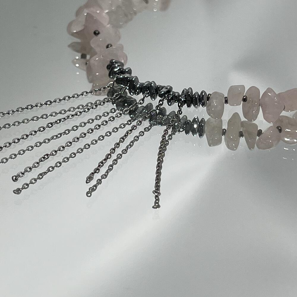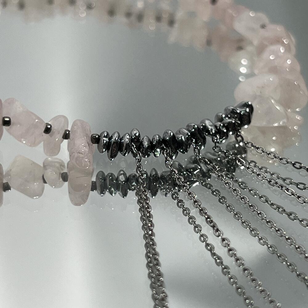 Украшение на шею чокер из розового кварца и гематита «Марианна»