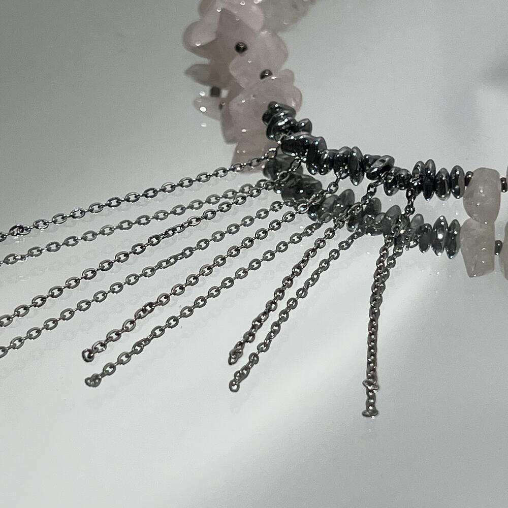 Cuarzo rosa Hematites Cuerda de joyería Metal