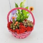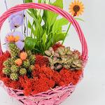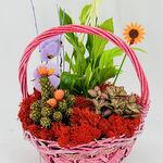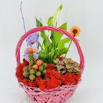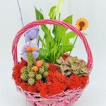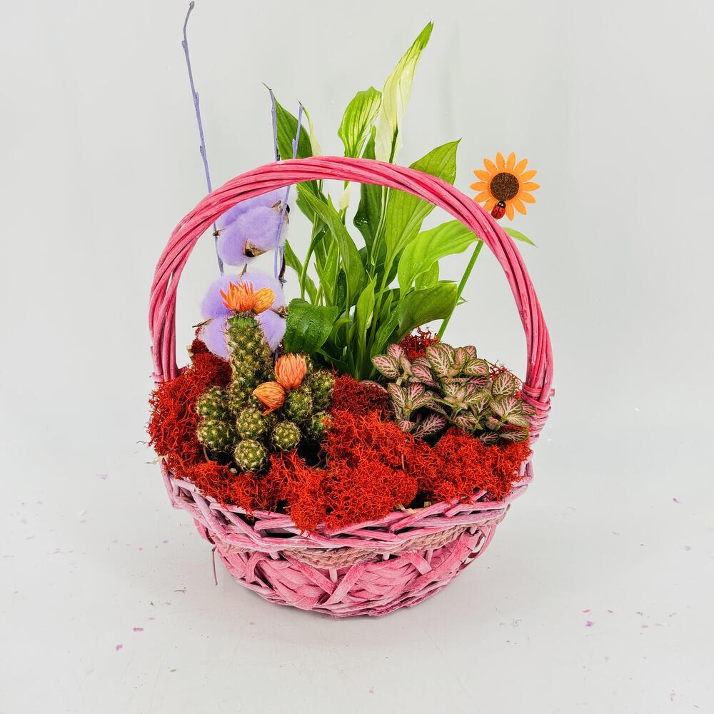 Поливать брызгать и любить Состав: Мох Кактус Спатифилум Фиттония Корзина плетеная Хлопок 2 шт Цветочек декор