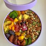 Бокс с орешками, медом и сухофруктами . Размер бокса -21*7.