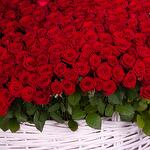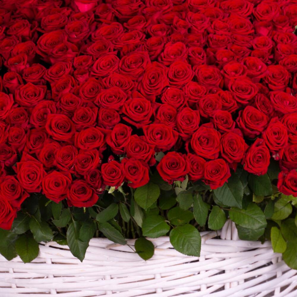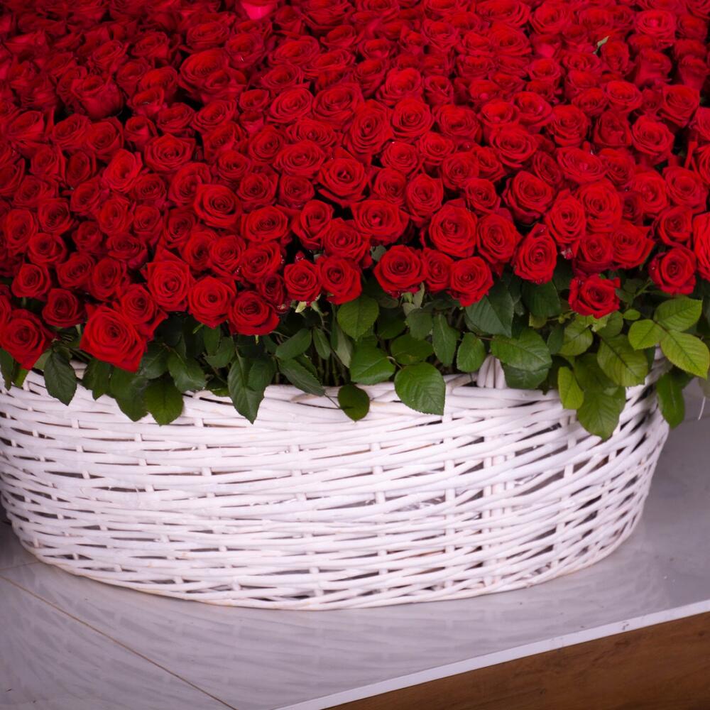 Роза Россия 60 см - 501 шт. Оазис флористический - 24 шт. плетенная корзина - 1 шт.