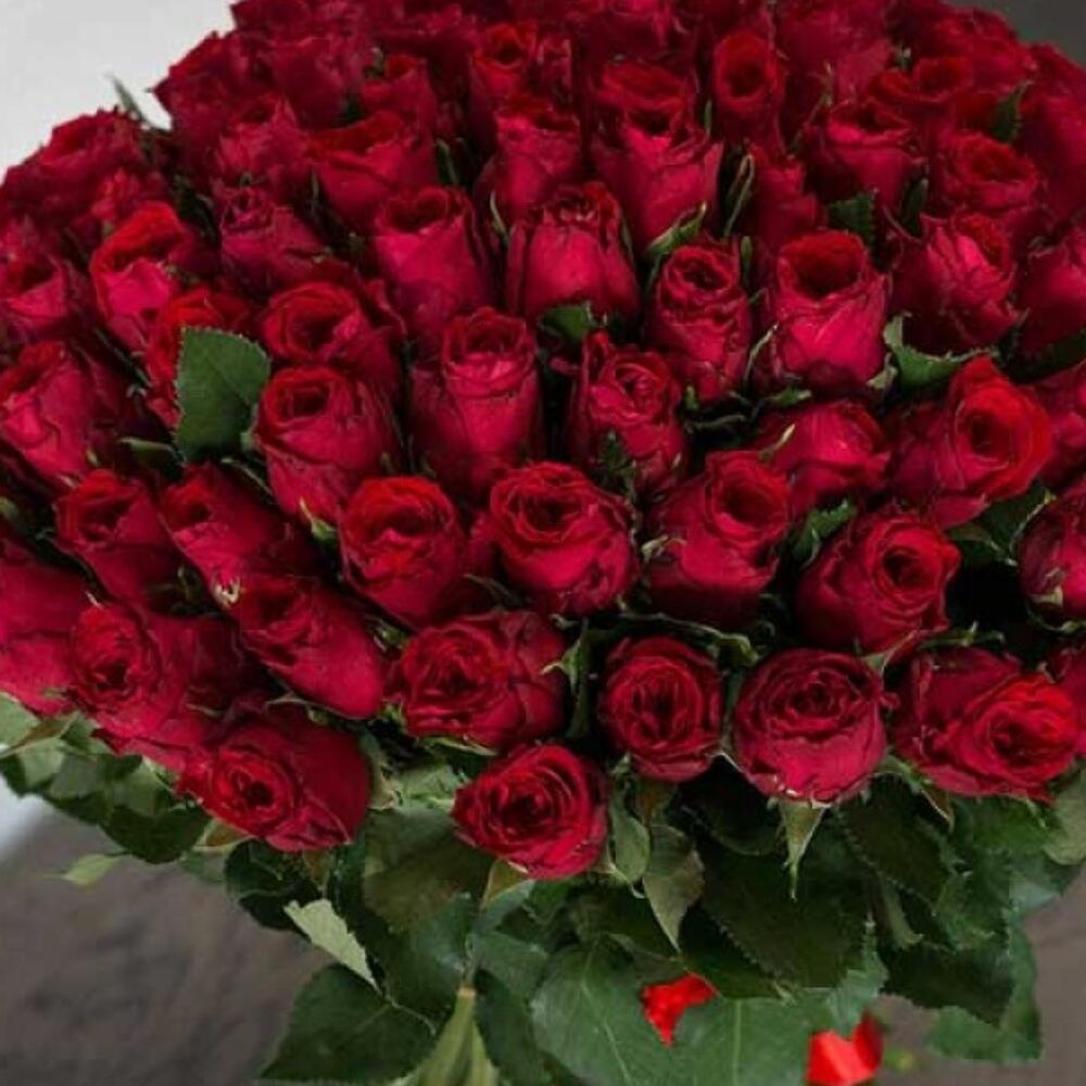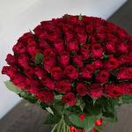 Роза - 101 шт. Лента атласная - 2 шт.