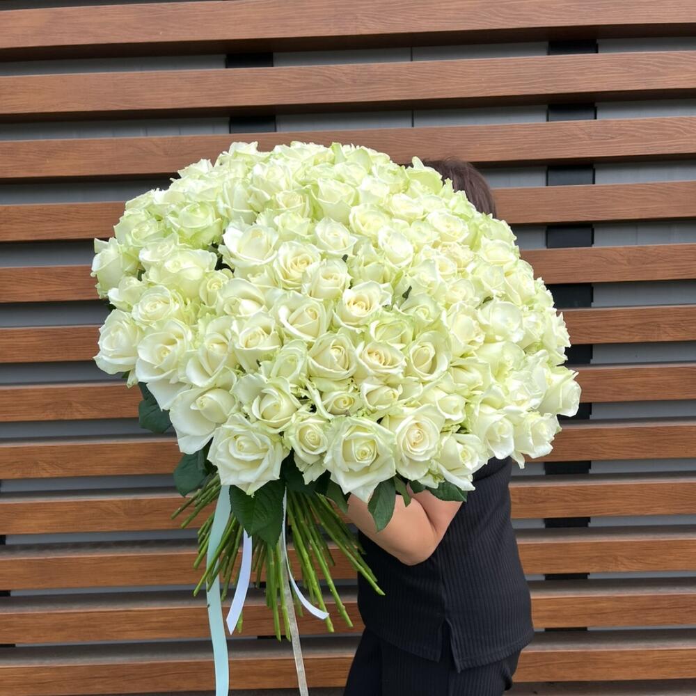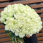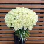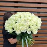 Роза белая - 101 шт. ленты атласные - 3 шт. витамины для цветов (кризал) - 1 шт.