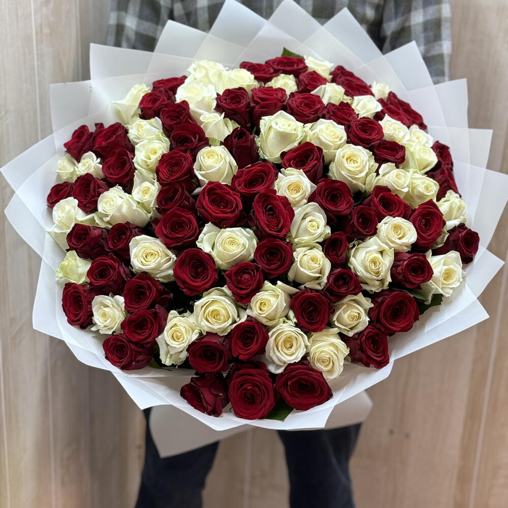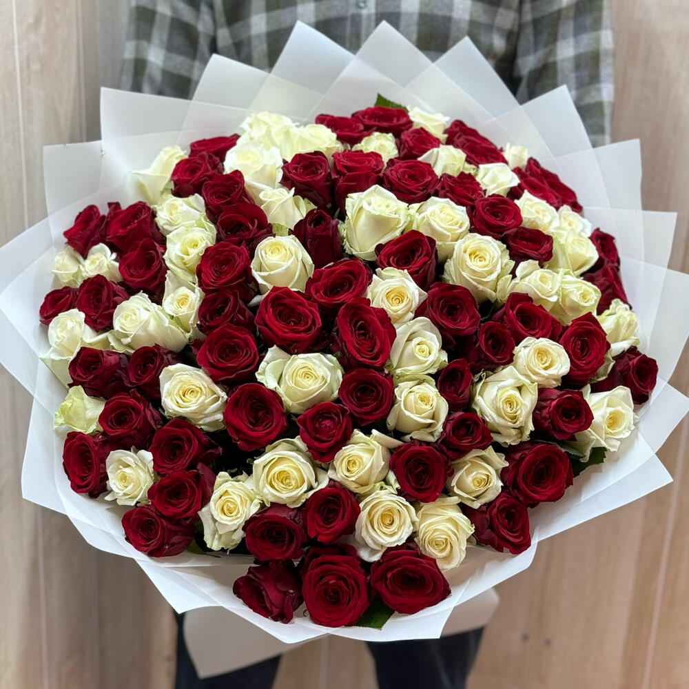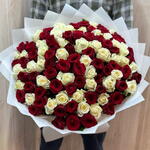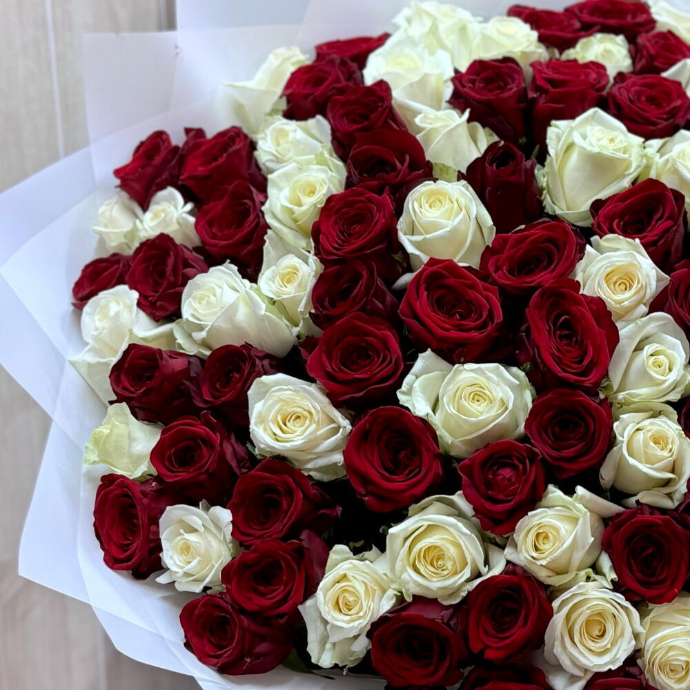 Роза Аваланж - 50 шт. Лента атласная - 1 шт. Упаковка дизайнерская - 5 шт. роза реднаоме - 51 шт.