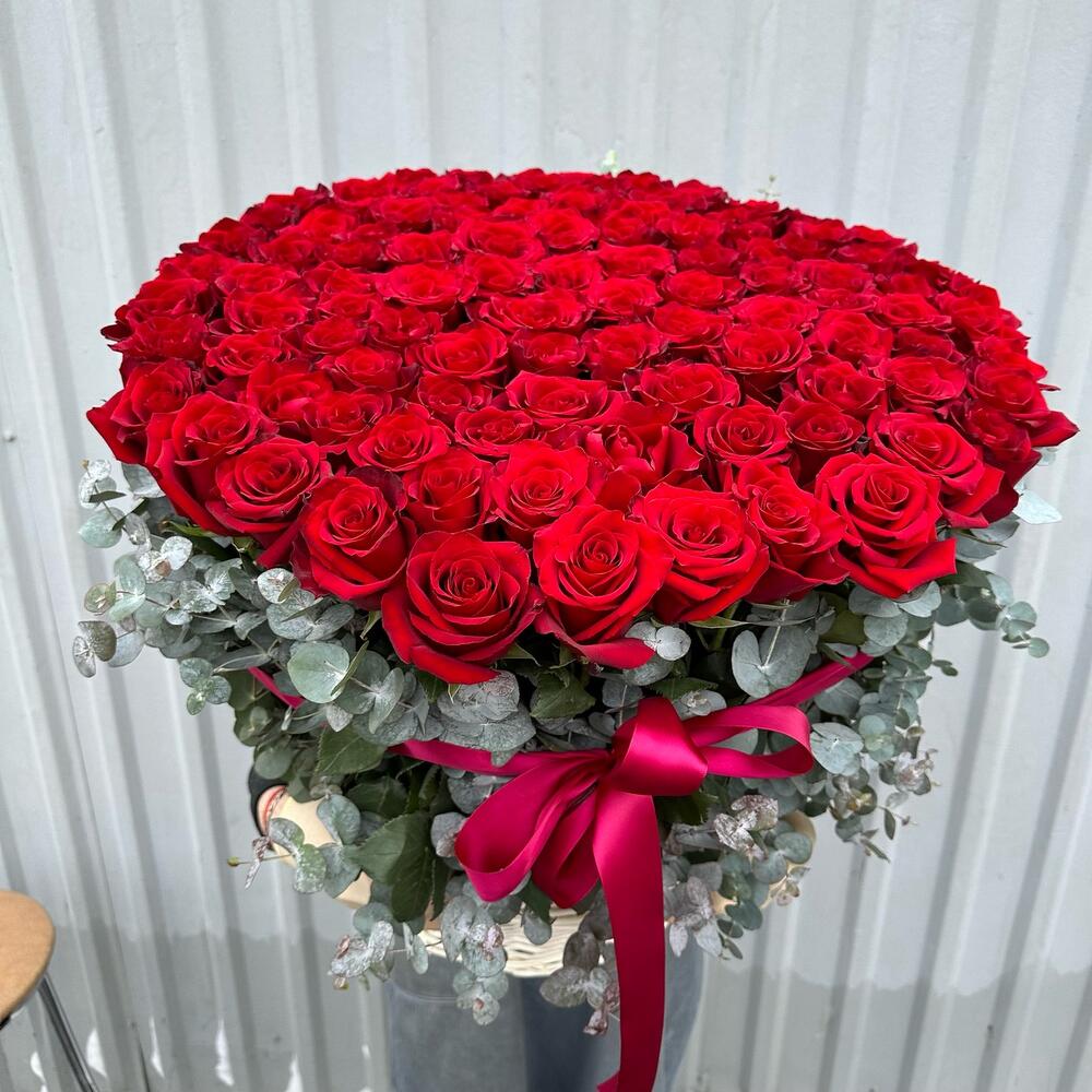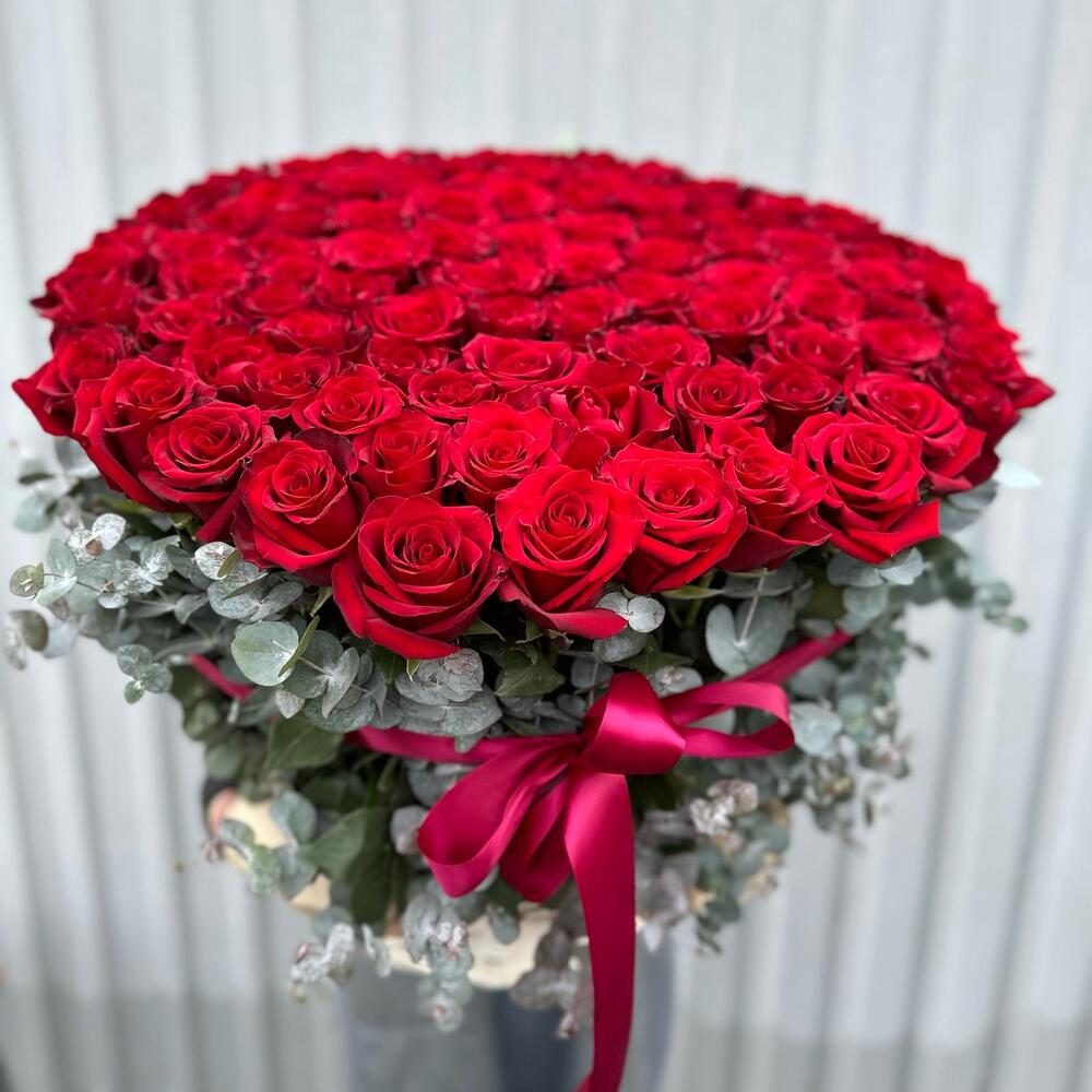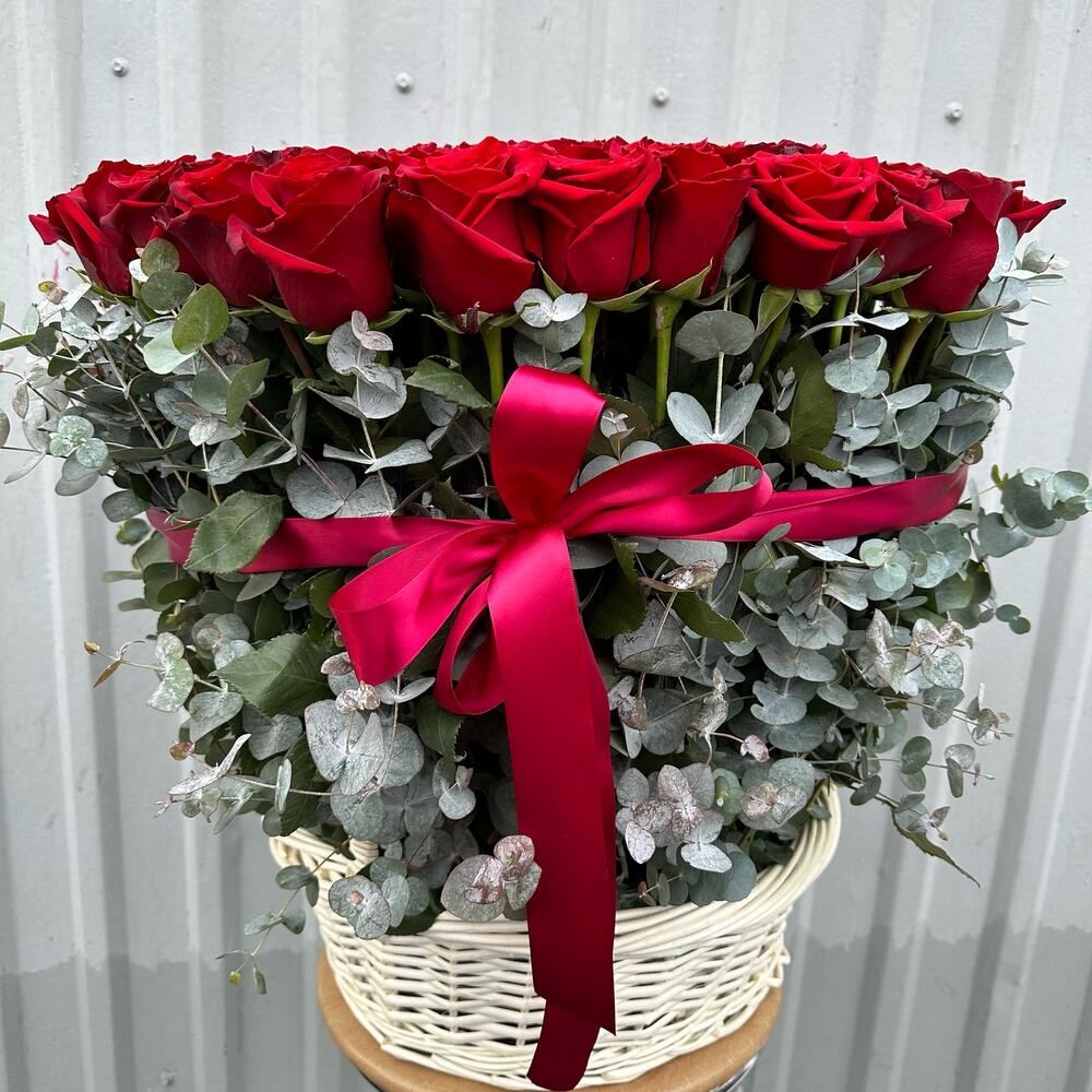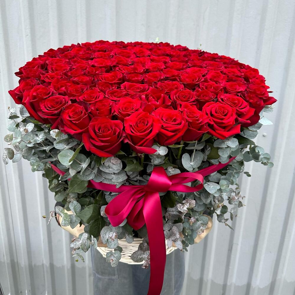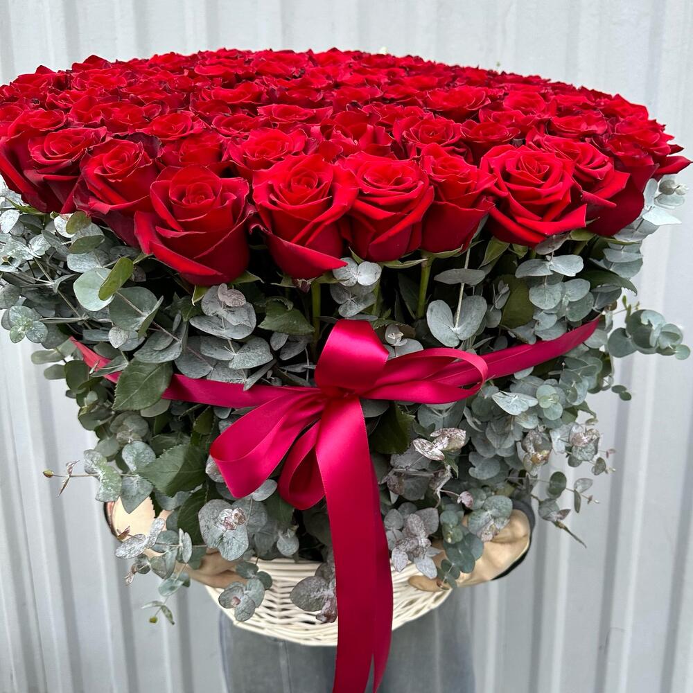 101 Роза в корзине с эвкалиптом / 101 Роза