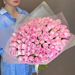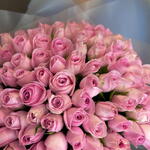 Букет из небольших кенийских роз. Высота роз: 37-40 см Размер бутона: 2-3 см Цветы живые и нуждаются в ежедневном уходе. Перед тем как поставить букет в воду, необходимо подрезать стебли острым ножом или секатором. Но не ножницами! Вода должна быть немного прохладной и отстоянной. Не забывайте менять воду раз в 2 дня и обновлять срез стеблей каждый раз перед новой постановкой цветка в воду. Цветы не должны храниться под прямыми солнечными лучами и вблизи отопительных приборов. Так же рекомендуем не снимать декоративную упаковку с букета, так как она продлевает ему жизнь. Цвет роз на фото. Это может зависеть от устройства с которого было сделано фото и от света. Так же, цветы могут уже к нам приехать с немного разным оттенком. Даже в одной пачке, с одной коробки могут незначительно отличаться оттенки. Но цвет роз нежно-розовый Размеры букета указаны с учетом упаковки Цвет упаковки . Цветы живые и нуждаются в ежедневном уходе. Перед тем как поставить букет в воду, подрежьте стебли острым ножом или секатором. Но не ножницами! Не забывайте менять воду раз в 2 дня и обновлять срез стеблей каждый раз перед новой постановкой цветка в воду. Не ставьте цветы под прямыми солнечными лучами и вблизи отопительных приборов. Так же рекомендуем не снимать декоративную упаковку с букета, так как она продлевает ему жизнь.