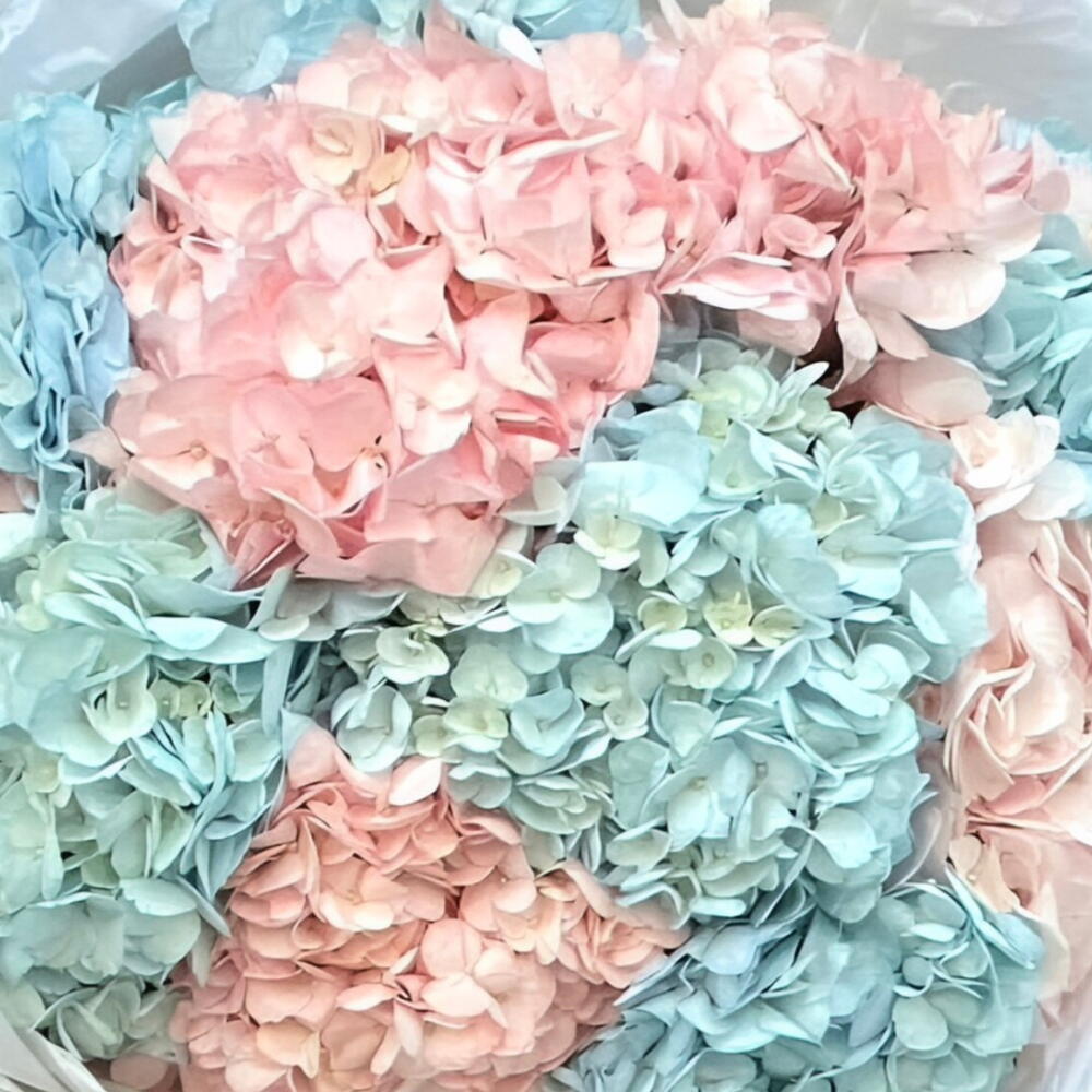 Лента атласная - 1 шт. Упаковка дизайнерская - 1 шт. Открыточка с вашими пожеланиями - 1 шт. гортензия микс цвет - 11 шт. море положительных эмоций))) - 1000 шт.