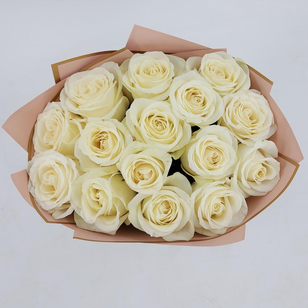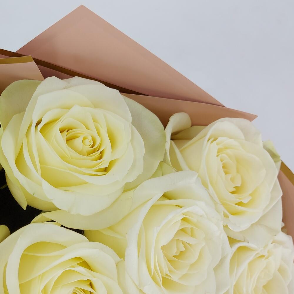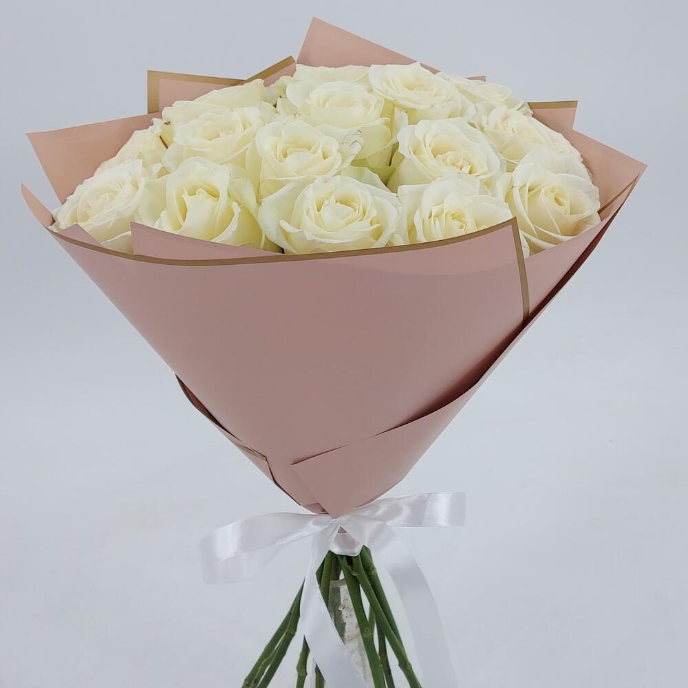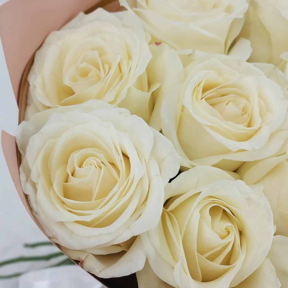 Нежные белые розы в лаконичном моно букете. Такой букет всегда уместен и подойдёт для любого повода: День Рождения, именины, годовщина свадьбы, рождение ребенка, 8 марта, День Святого Валентина, выпускной и т.д. Можно вручить маме, сестре, подруге, коллеге, учителю, любимой.