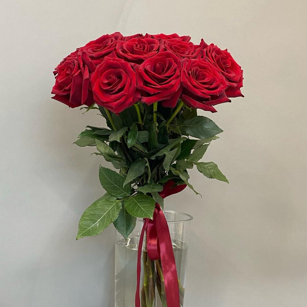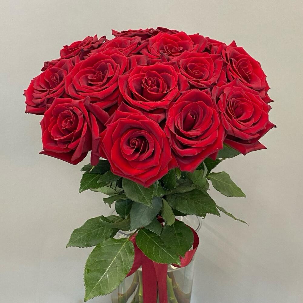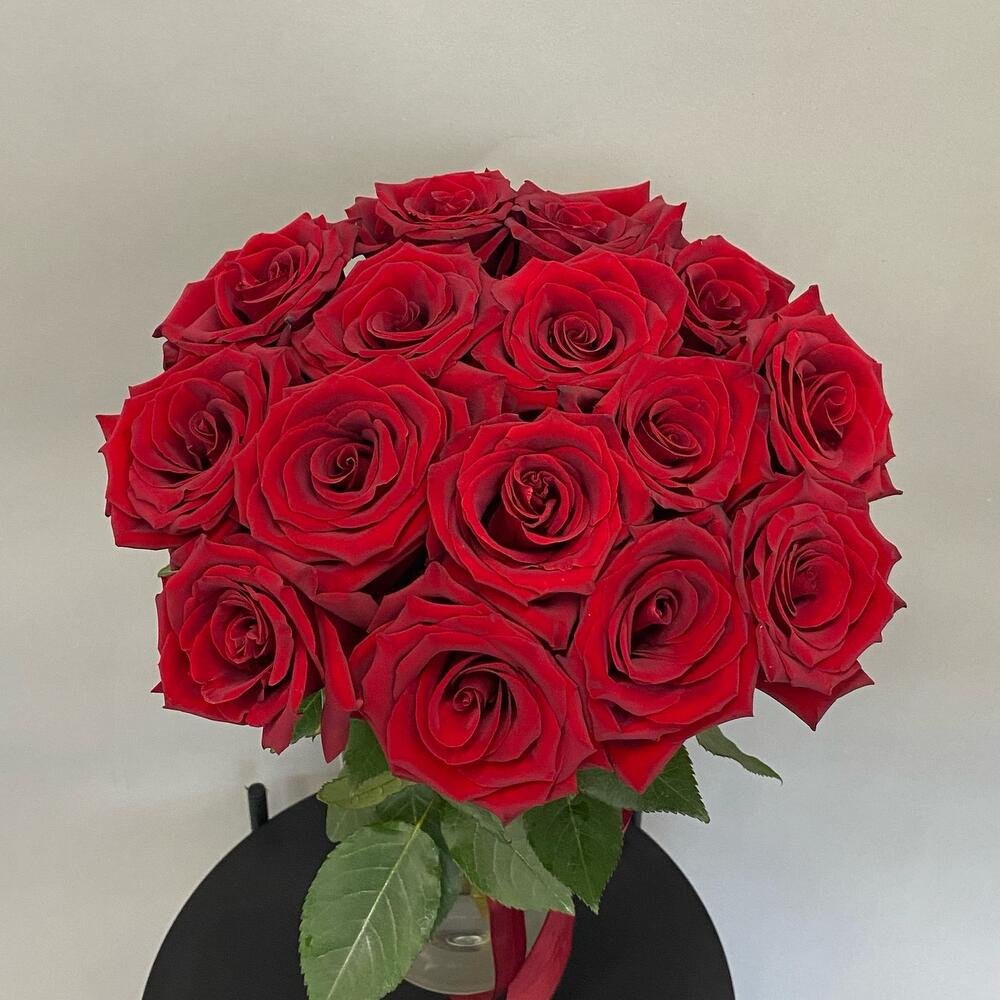 Роза Эквадор - 15 шт. Лента атласная - 1 шт.