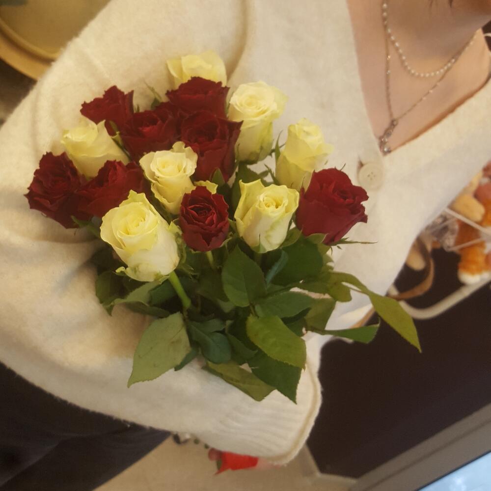 Лента атласная - 1 шт. кейниская красно-белый микс 40 см - 15 шт.