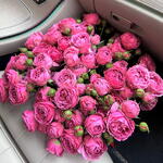 Лента атласная - 1 шт. розовые пионовидные розы кустовые - 19 шт.