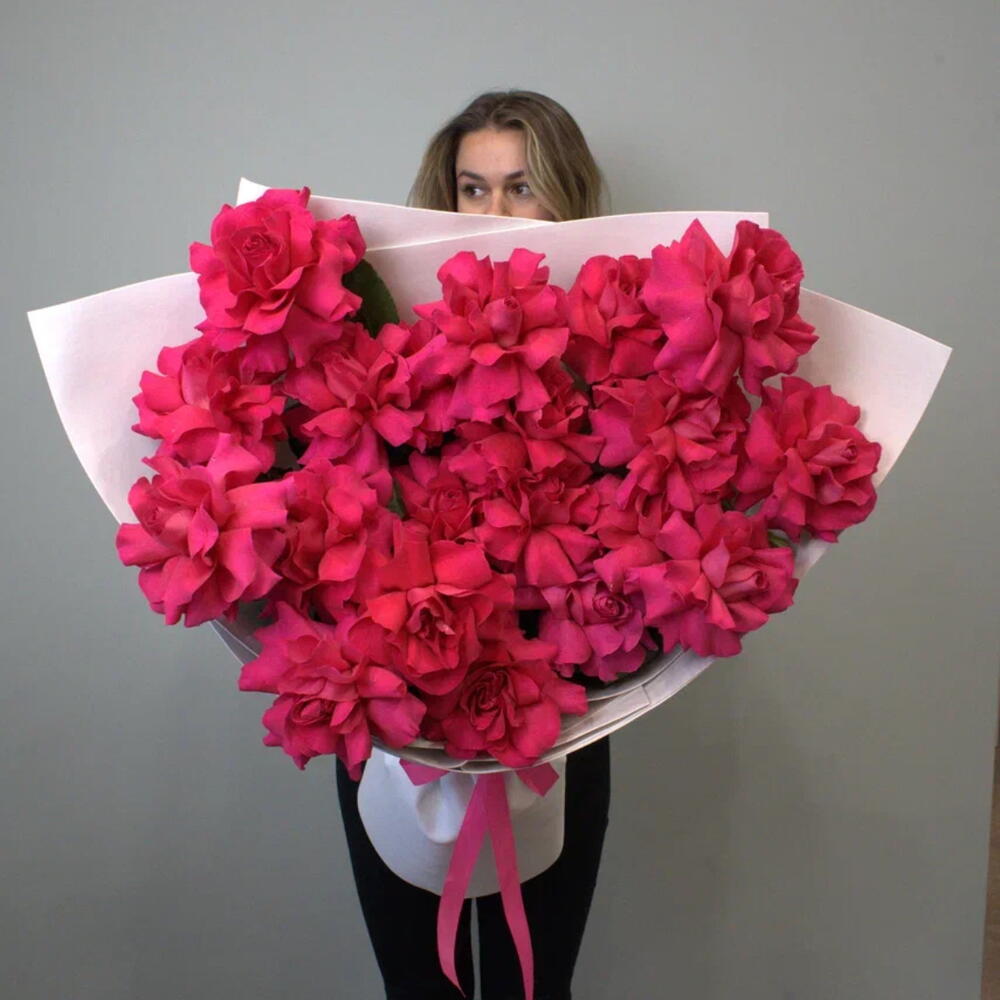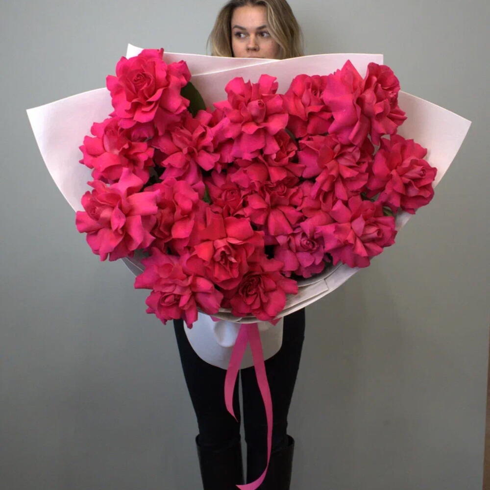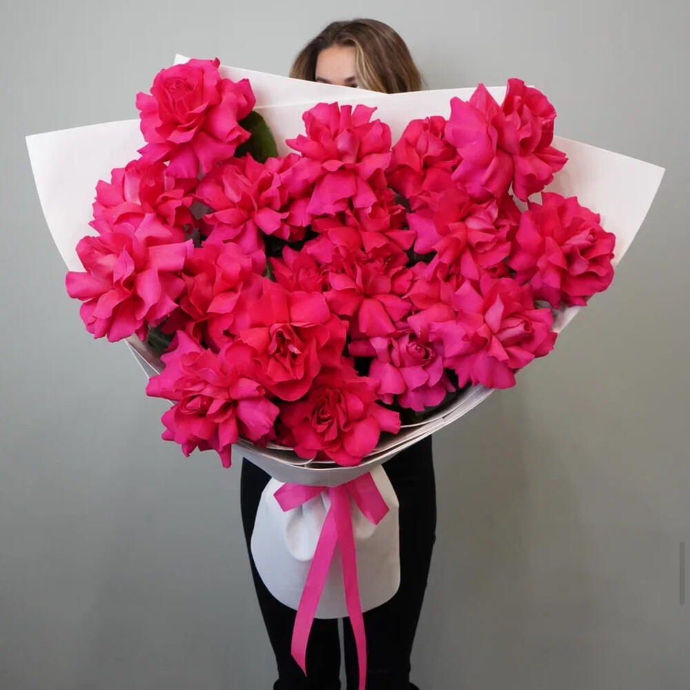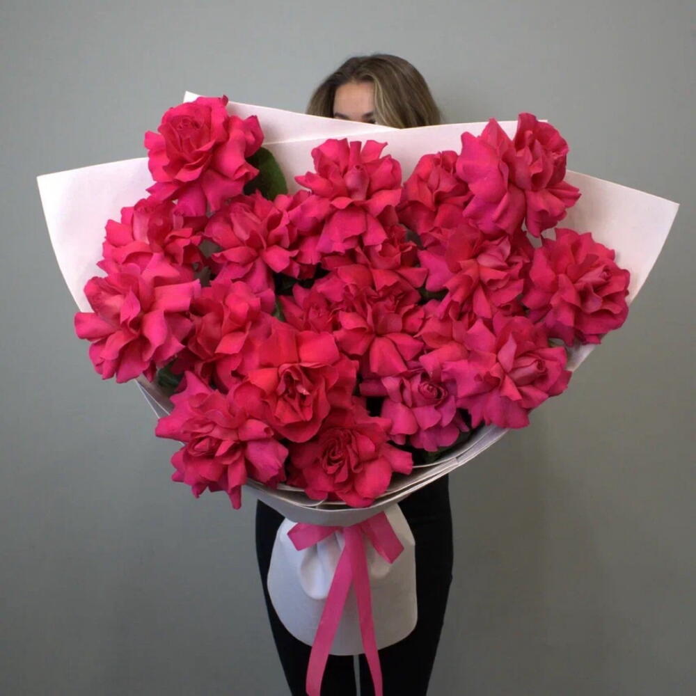 Эффектный букет из насыщенных роз цвета фуксия — настоящий взрыв эмоций и красоты. Эти роскошные цветы моментально притягивают взгляд и создают ощущение праздника, страсти и восхищения. Идеально подойдёт для особого случая: дня рождения, признания в любви, годовщины или просто чтобы сказать «Ты прекрасна» без слов. Пышная форма, сочные оттенки и стильная упаковка делают букет по-настоящему премиальным подарком.